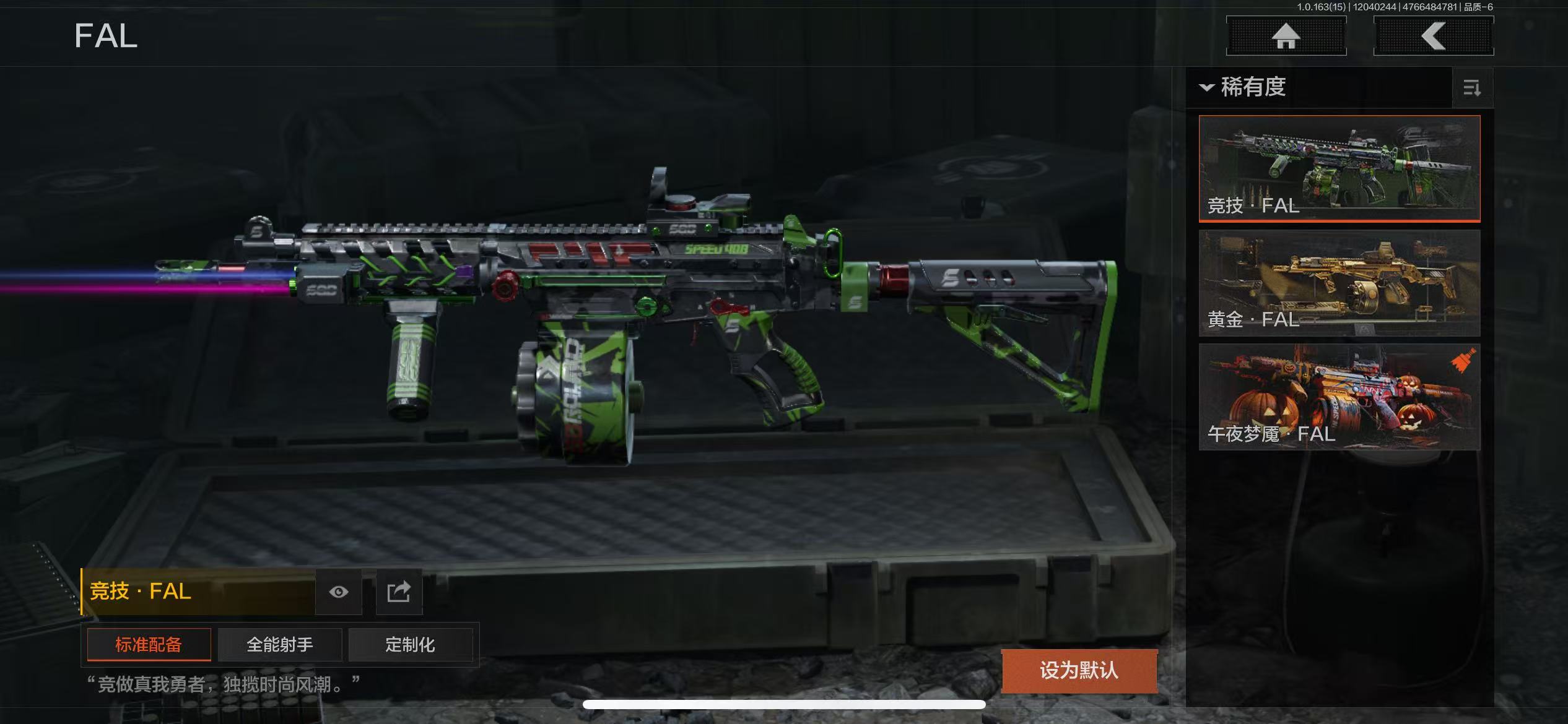 热能武器·补牢 伸冤者迷踪·M4A1 午夜梦魇·FAL 竞技FAL 黄金FAL 黄金·H416 蓝色咆哮·H416 伦琴幻海·H416