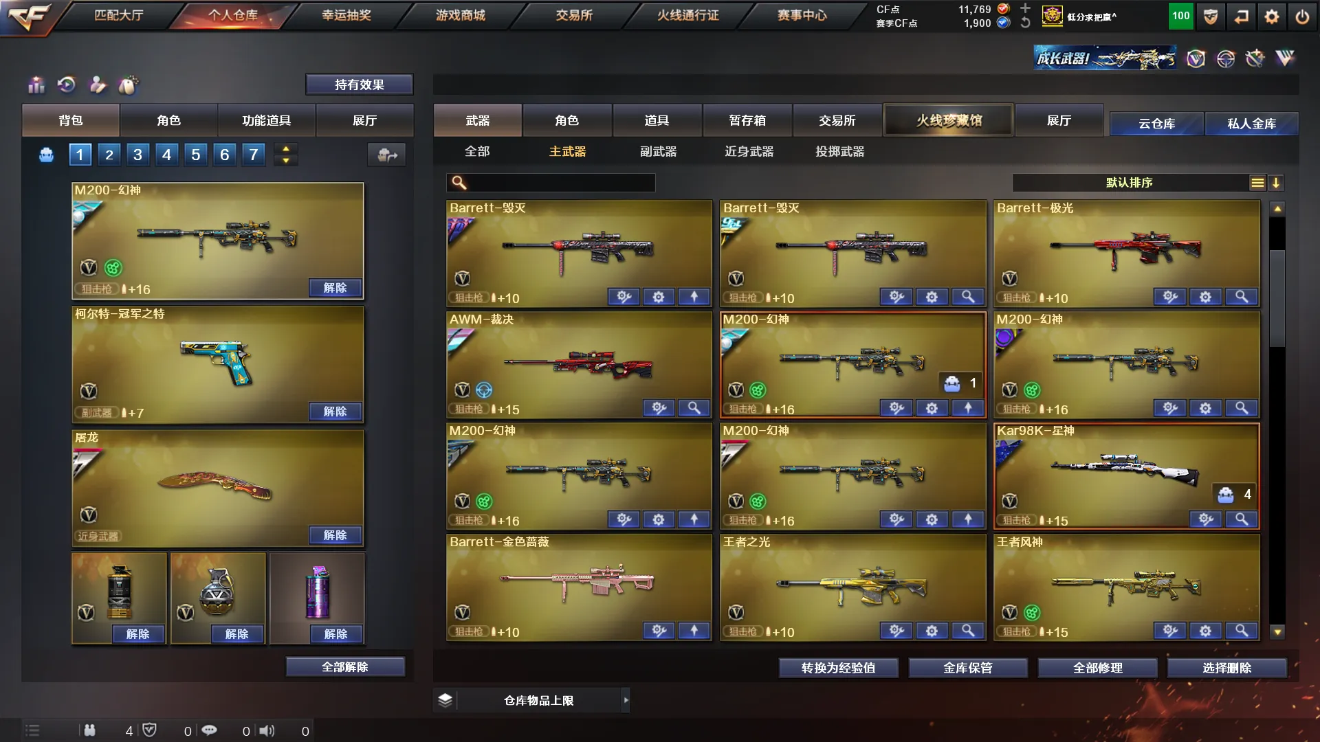 传说灵眸,幻神4皮音效卡,星神,双蝴蝶刀,六烈盘蝴蝶小刚,隼,g36c幻影,加特林三件套满生化皮肤