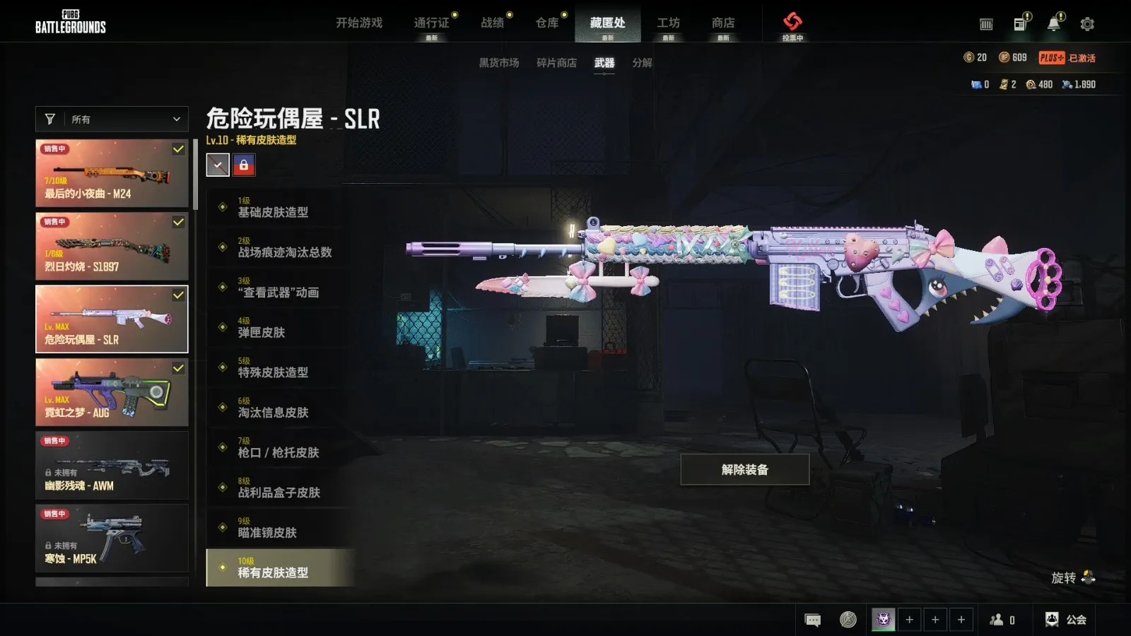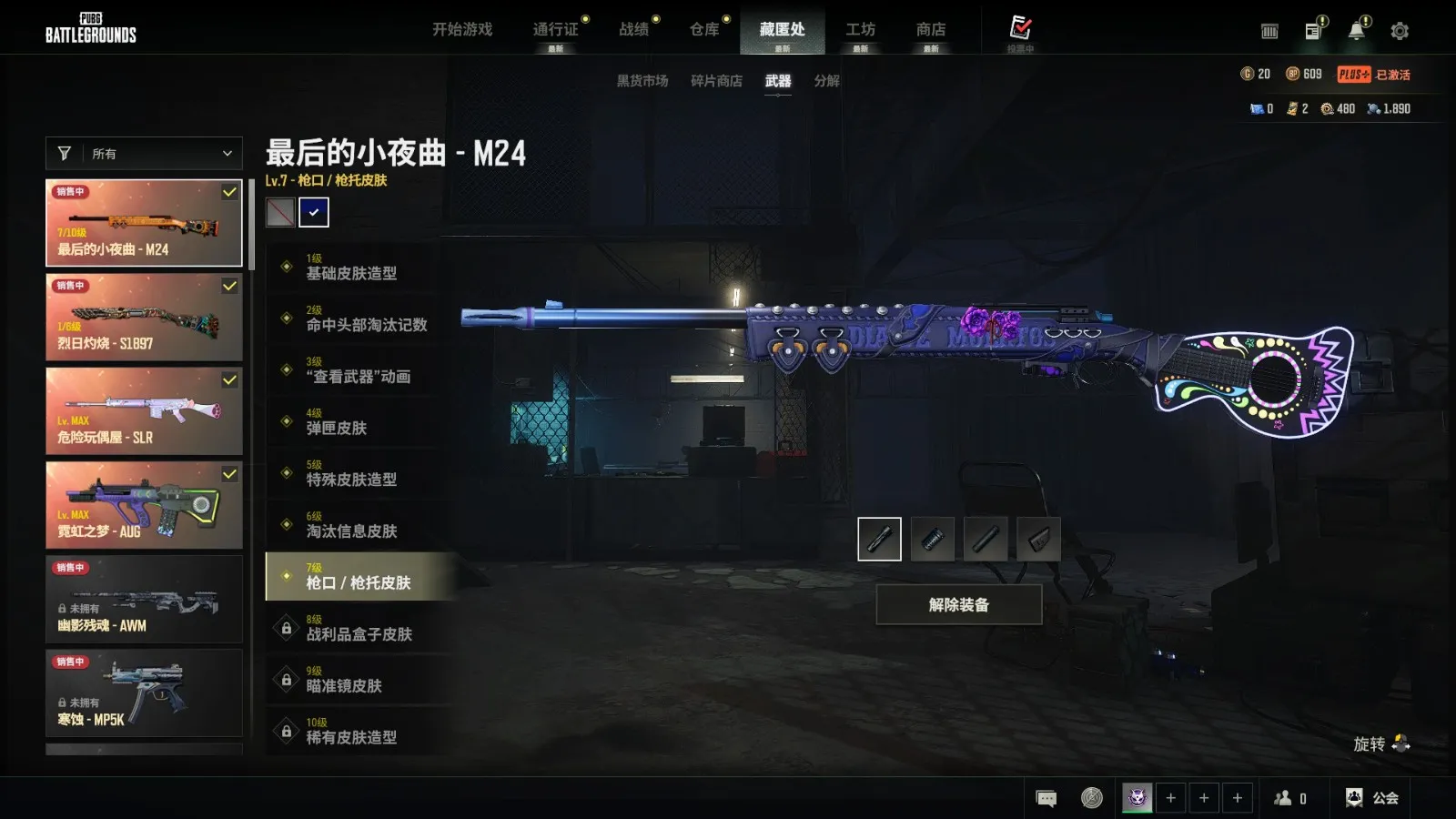 二级密123456翰娜6把成长➕满级霓虹AUG➕满级玩偶SLR➕7级异色小夜曲M24➕双烟➕蓝烟抢