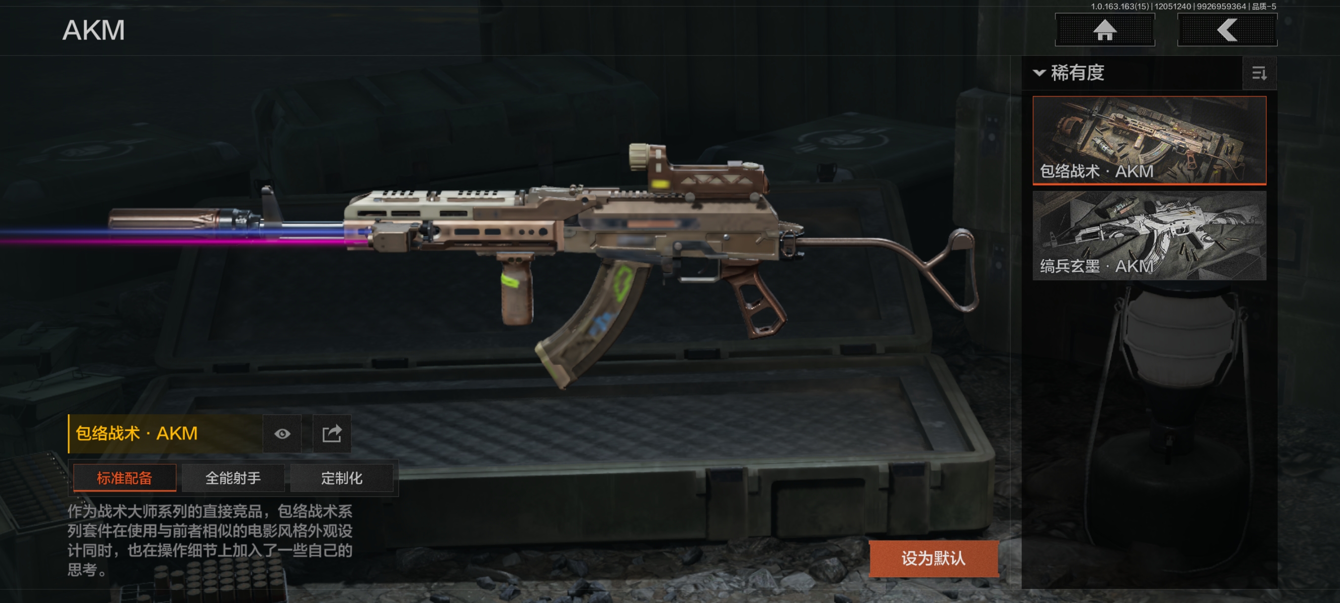【安卓】 3刀4皮2金枪,涂鸦利刃,霜狼生存刀,极低拼图迷彩作战服,包络战术AKM,战术大师AN94