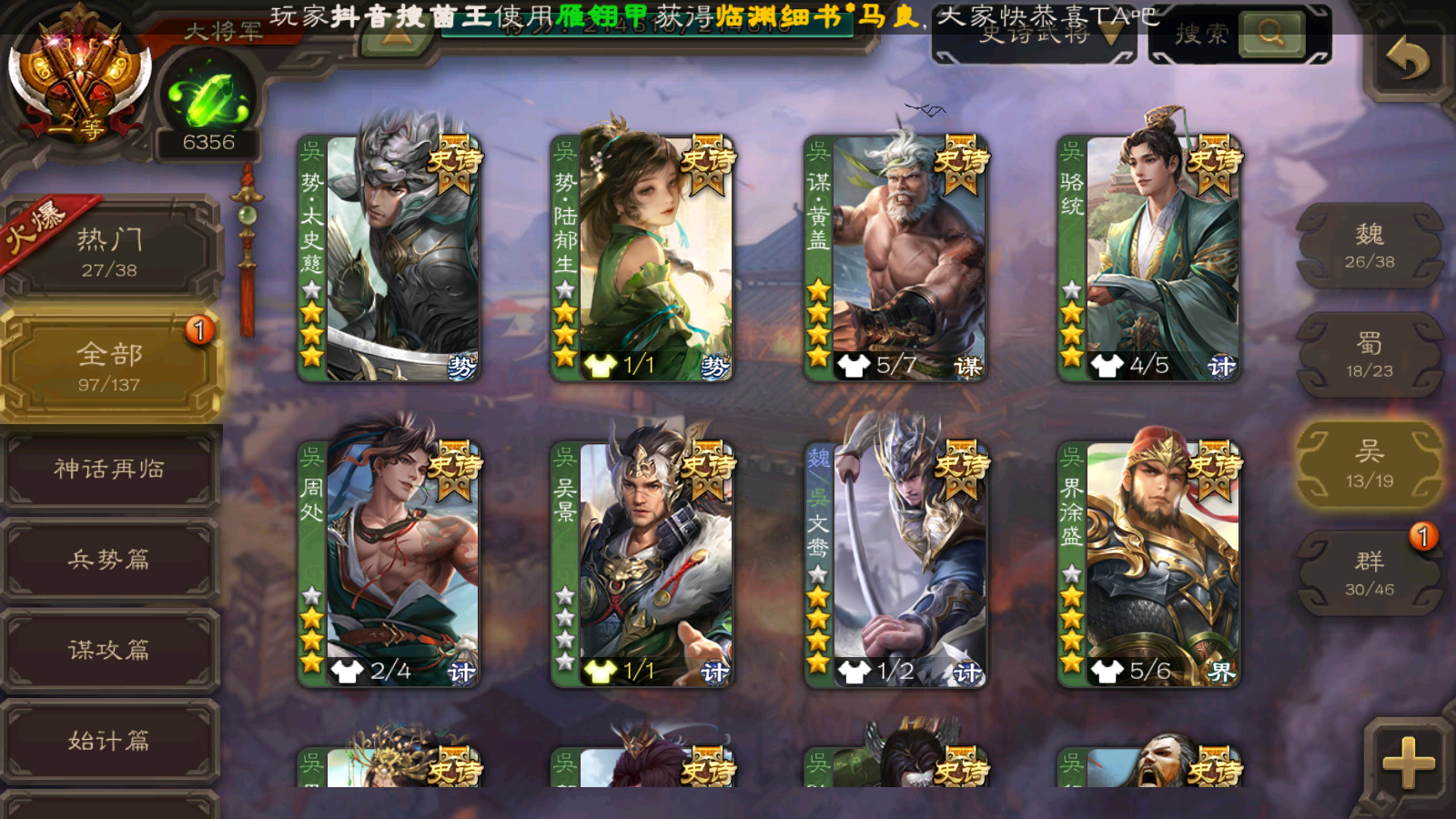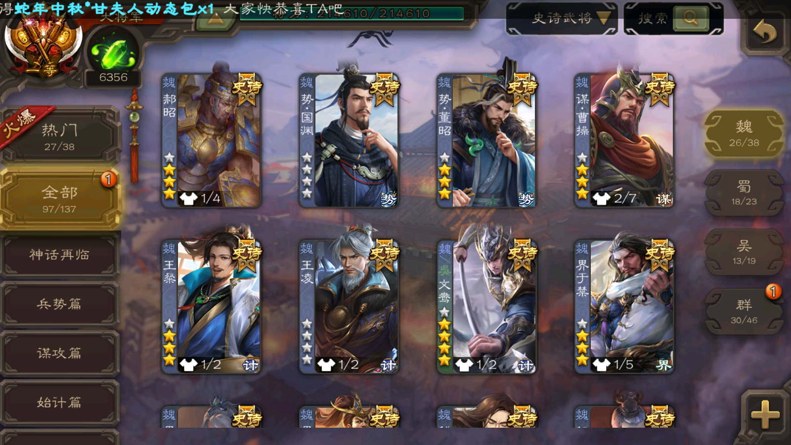 【全平台】 【锦鲤有卡】三卡97史诗崔芙至尊曹髦势魏延动刘焉势国渊势太史慈谋诸葛友诸葛势于吉神荀彧