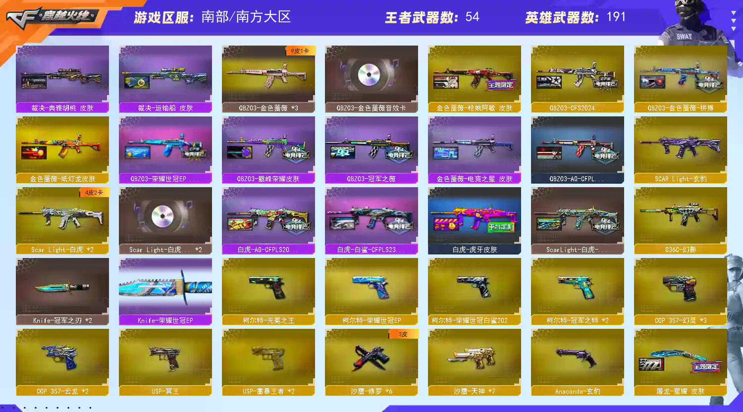 【南.部】氪金天花板♥幻神18皮金色礼盒♥裁决qbz白虎星神三件套♥王者雷暴全质量手枪♥土豪专用具体看图喜欢收藏