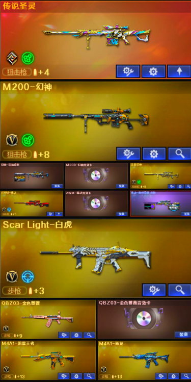 天花板♥圣灵幻神三件套♥裁决流光三件套♥qbz带卡白虎满级高质量手枪♥八烈蝴蝶主流满音效