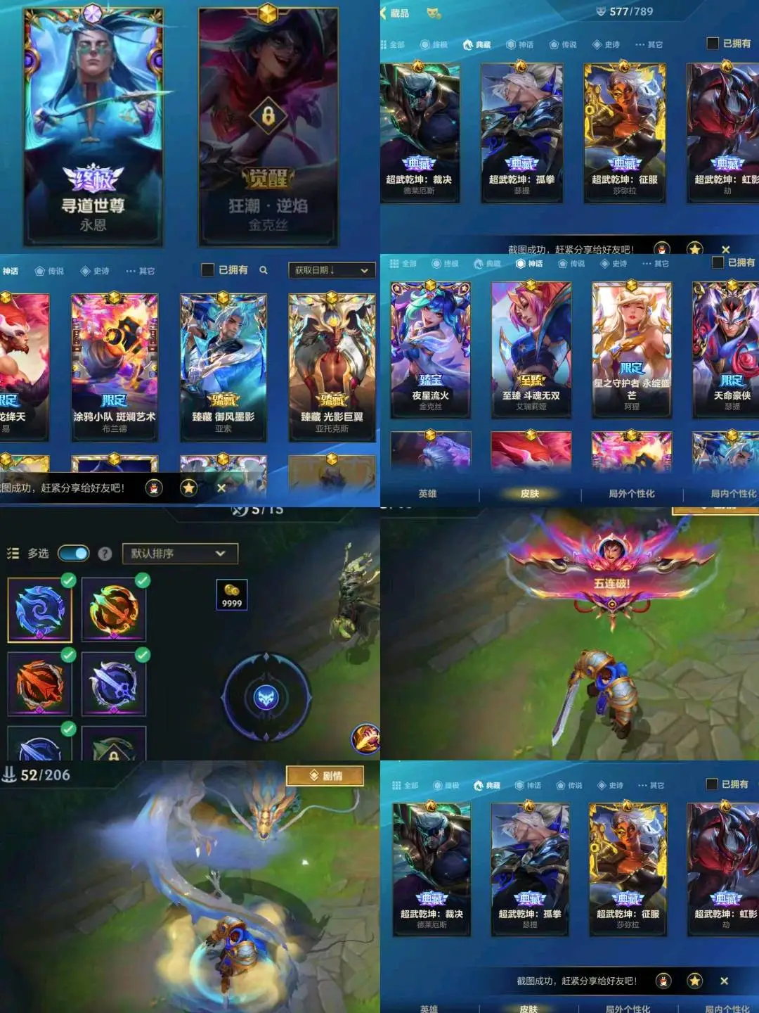 578皮肤,寻道世尊,满典藏(圣龙归宵),臻藏亚索御风墨影,剑魔臻藏光影巨翼,宝