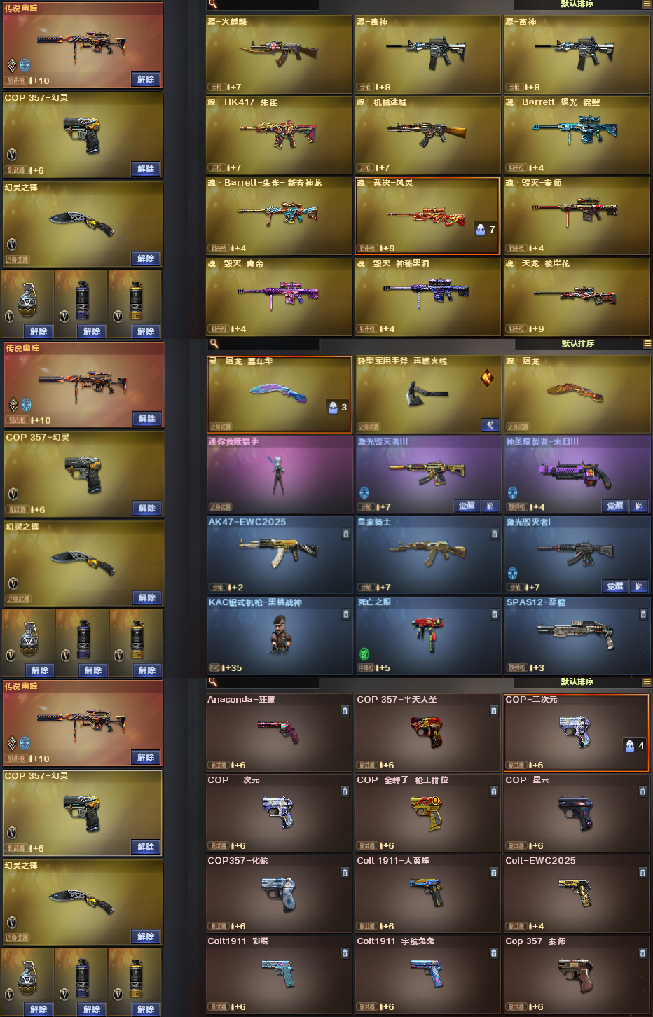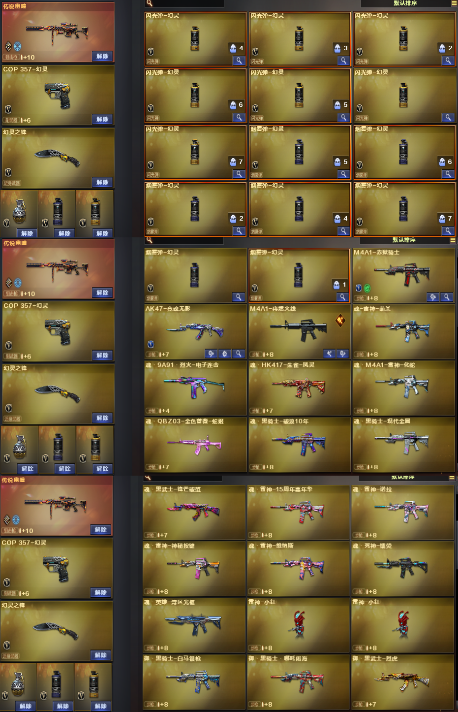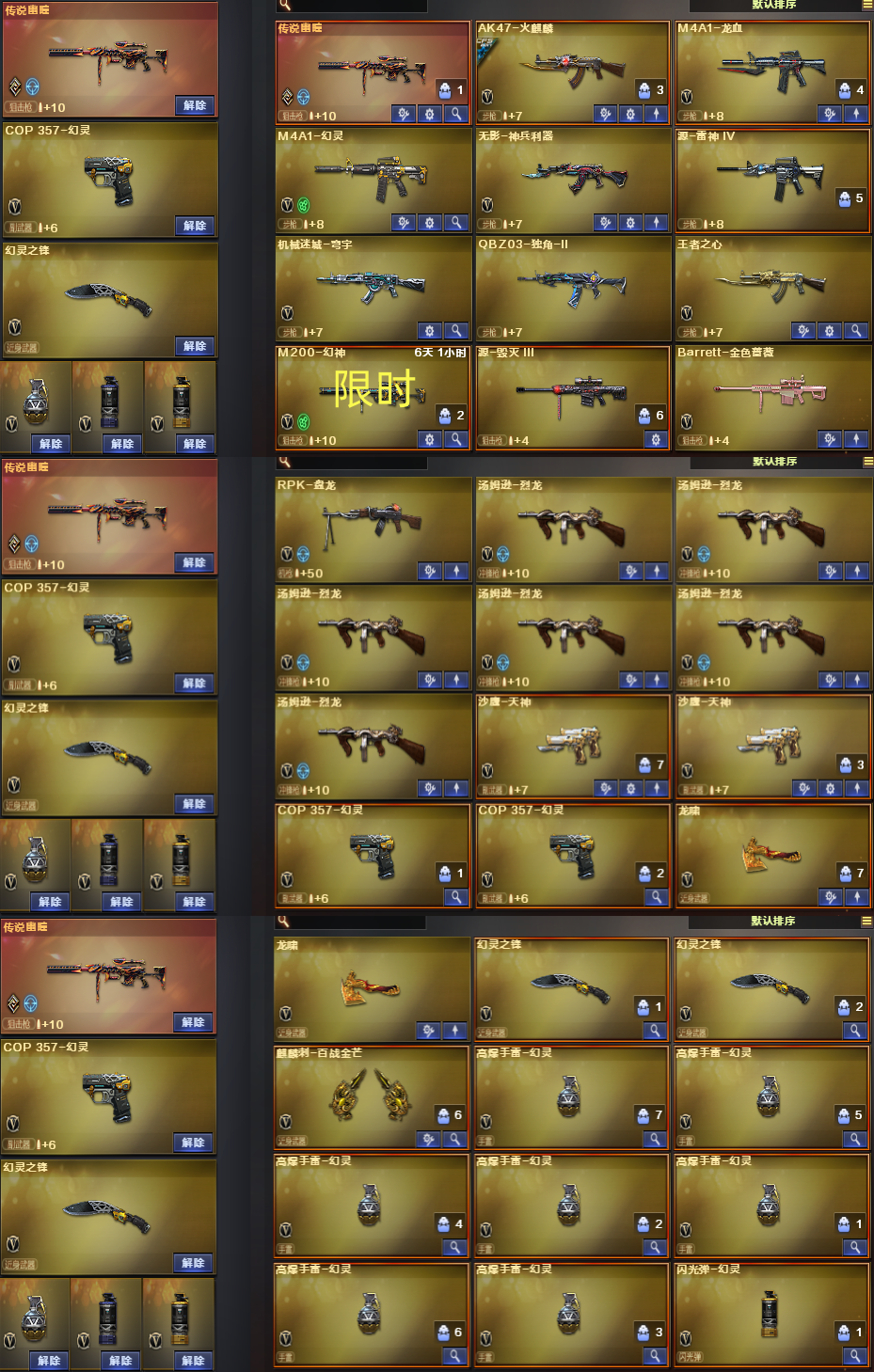 传说幽瞳/Barrett金色蔷薇/火麒麟STAR/QBZ独角-II/王者之心/M4幻灵/6烈龙+死亡之眼/cop幻灵*2/4防王者影豹/4防影豹/