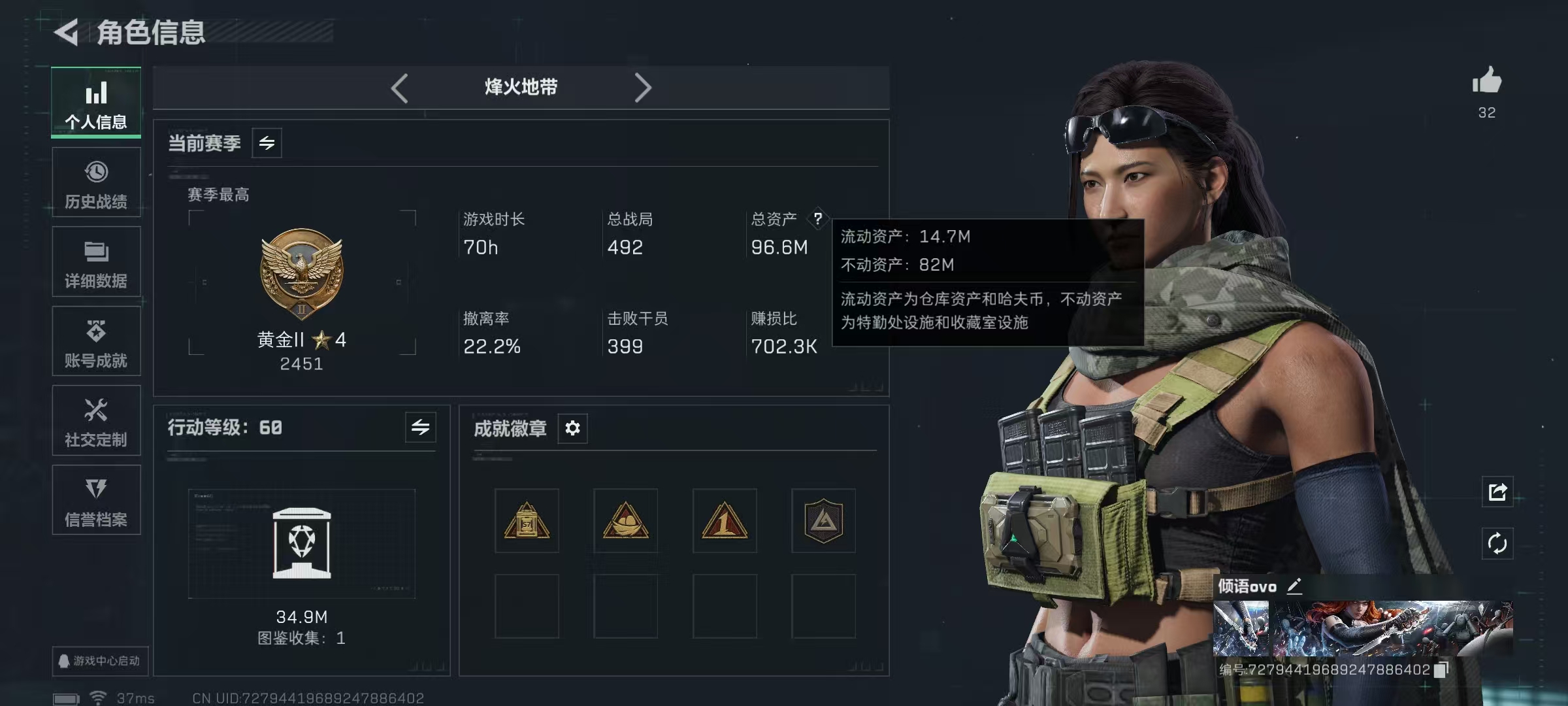 - 烽火地带段位: 黄金