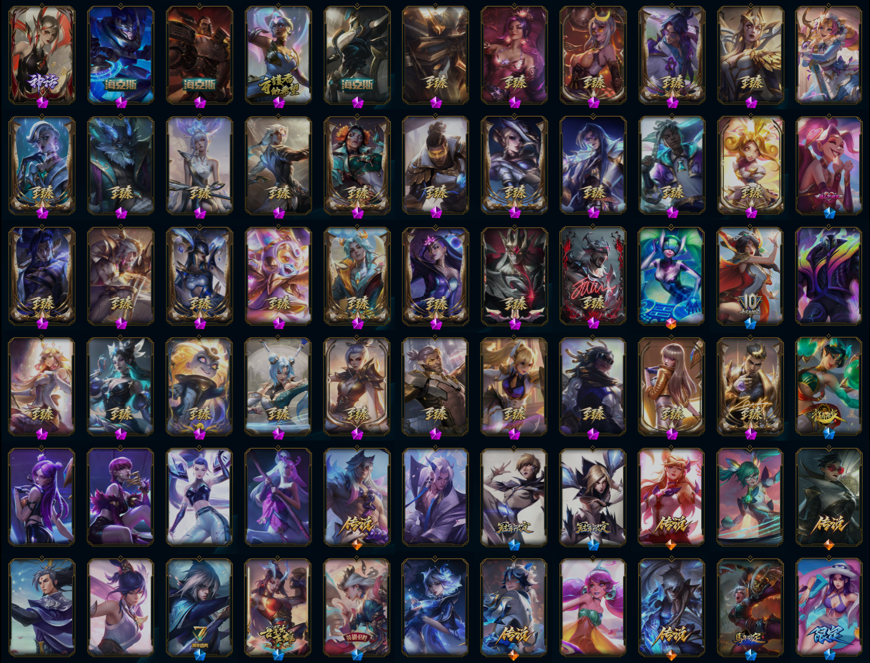 【重要皮肤】机神玄武盖伦至臻 永恒星灵佐伊至臻 T1塞拉斯至臻 暗裔英雄嘉文四世至臻 暗星女王黛安娜至臻 T1杰斯至臻 西部魔影伊芙琳至臻 天龙之子伊泽瑞尔至臻 北极星钢影卡蜜尔至臻 心之钢永恩至臻 魂蔷薇烈娜塔至臻 玉剑传说琴仙子至臻 墨之影武者亚索至臻 剪纸仙灵希维尔至臻 青花瓷丽桑卓至臻 北极星使者沃里克至臻 灵魂莲华易至臻 海珀利安小队X09星环灵风迦娜至臻 星之守护者辛德拉至臻 星之守护者艾克至臻 女帝黛安娜至臻 战斗学院蕾欧娜至臻 太空律动璐璐至臻 魔女乐芙兰至臻 未来战士卢锡安至臻 真实伤害赛娜至臻 星之守护者索拉卡至臻 源计划逆流塞拉斯至臻 黑夜使者凯隐至臻 KDA一代卡莎至臻 烈焰美人薇恩至臻 星之守护者妮蔻至臻 玉剑传说武剑仙至臻 殿堂传奇乐芙兰 海克斯科技嘉文四世 永恒之森奥恩 黎明使者卡尔玛 恐惧新星德莱厄斯 零之枪骑赫卡里姆 胜利剑圣易 胜利女神娑娜 胜利女神希维尔 胜利之王泰达米尔 胜利巨口克格莫 钢铁军团拉克丝 荣誉使者玛尔扎哈 玉剑传说无影 神凰行者烈羽焰凰霞 玉剑传说神机花火 玉剑传说舞龙卫 玉剑传说翼剑仙 点心宝贝阿木木 天龙之子卡莎 天龙之子斯莫德 替父从军花木兰 定海神珍孙悟空 觅心萝莉金克丝 觅心猎手薇恩 水晶玫瑰斯维因 北极星使者萨科 冬境仙灵索拉卡 冰雪风暴希维尔 狂心冰王图奇 魄罗骑士瑟庄妮 死亡誓约卡特琳娜 泳池派对凯特琳 泳池派对厄运小姐 泳池派对塔里克 泳池派对格雷福斯 泳池派对李青 泳池派对瑟提 泳池派对布隆 DRX阿卡丽 EDG佐伊 DWG烬 iG卡蜜尔 iG卡莎 SKTT1辛德拉 SKTT1卡莉丝塔 SKTT1瑞兹 SKTT1贾克斯 SKTT1劫 SKTT1李青 暗杀星蒙多 Fnatic库奇 防暴士兵辛吉德 防暴天使凯尔 冠军典狱长锤石 冠军掠夺者卡兹克 冠军之刃锐雯2016 春晖大帝锤石 鬼影森森茂凯 海贼瑞兹 警用试作体K9内瑟斯 南瓜头费德提克 圣诞开心鬼提莫 圣诞狂欢基兰 圣诞狂欢努努和威朗普 圣诞驯鹿克格莫 无头骑士赫卡里姆 幸福女神乐芙兰 雪默丁格 野兽猎人泰达米尔 暗影沃里克 冠军之箭艾希 阿木木主人不要我了 地底世界崔斯特 都铎王朝图奇 十五周年纪念希维尔 十周年纪念安妮 胜利凤凰艾尼维亚 暗裔英雄盖伦 DJ娑娜 灵魂守卫乌迪尔 未来战士伊泽瑞尔 绝息圣堂洛