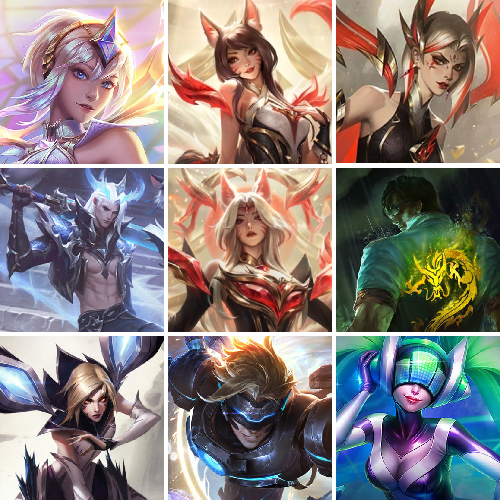 殿堂阿狸、龙瞎、EDG冠军皮肤、FPX冠军皮肤、IG冠军皮肤、ssw冠军皮肤、斩星魔剑剑圣、冰雪限定