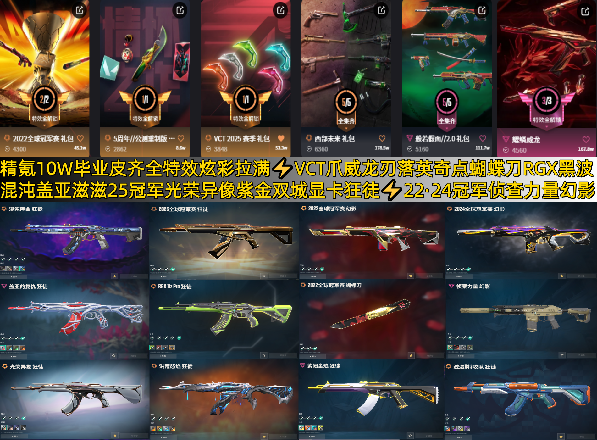 【当前段位:黄金II】精氪10W特效炫彩拉满⚡VCT威龙落英RGX黑波奇点蝴蝶刀⚡25冠军混沌盖亚狂徒⚡22·24侦查幻影