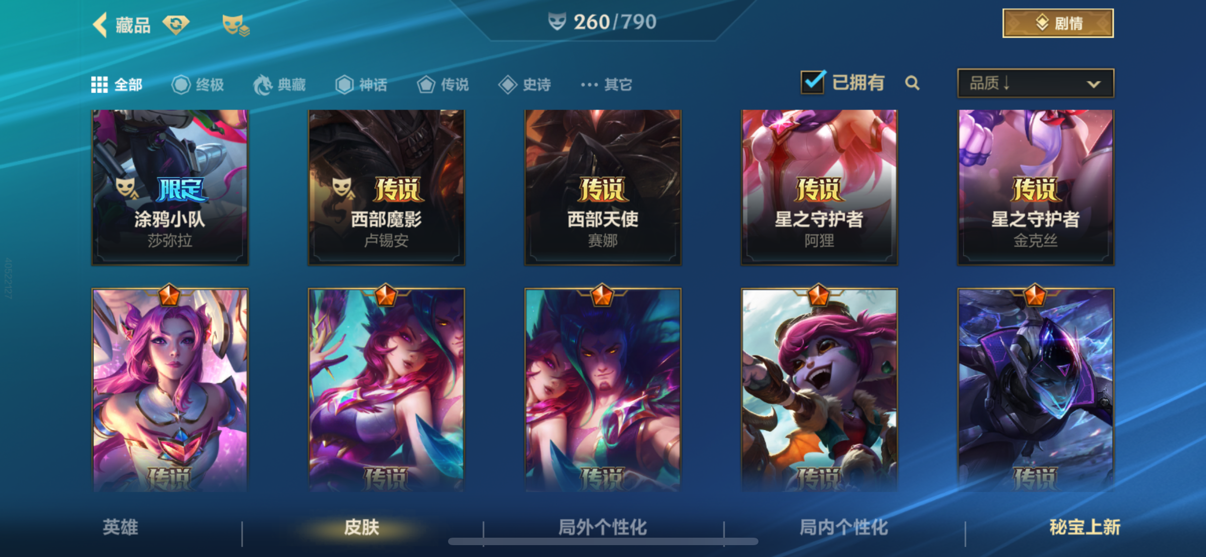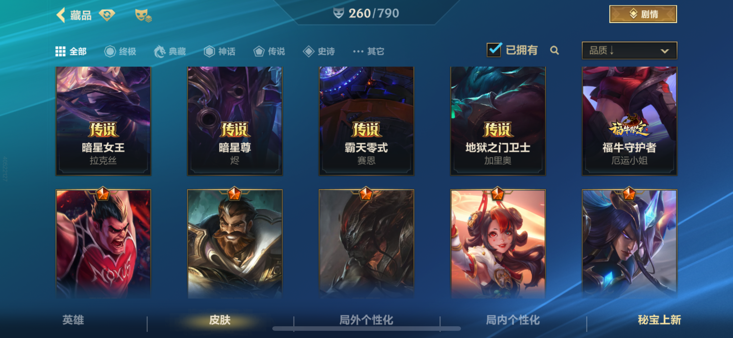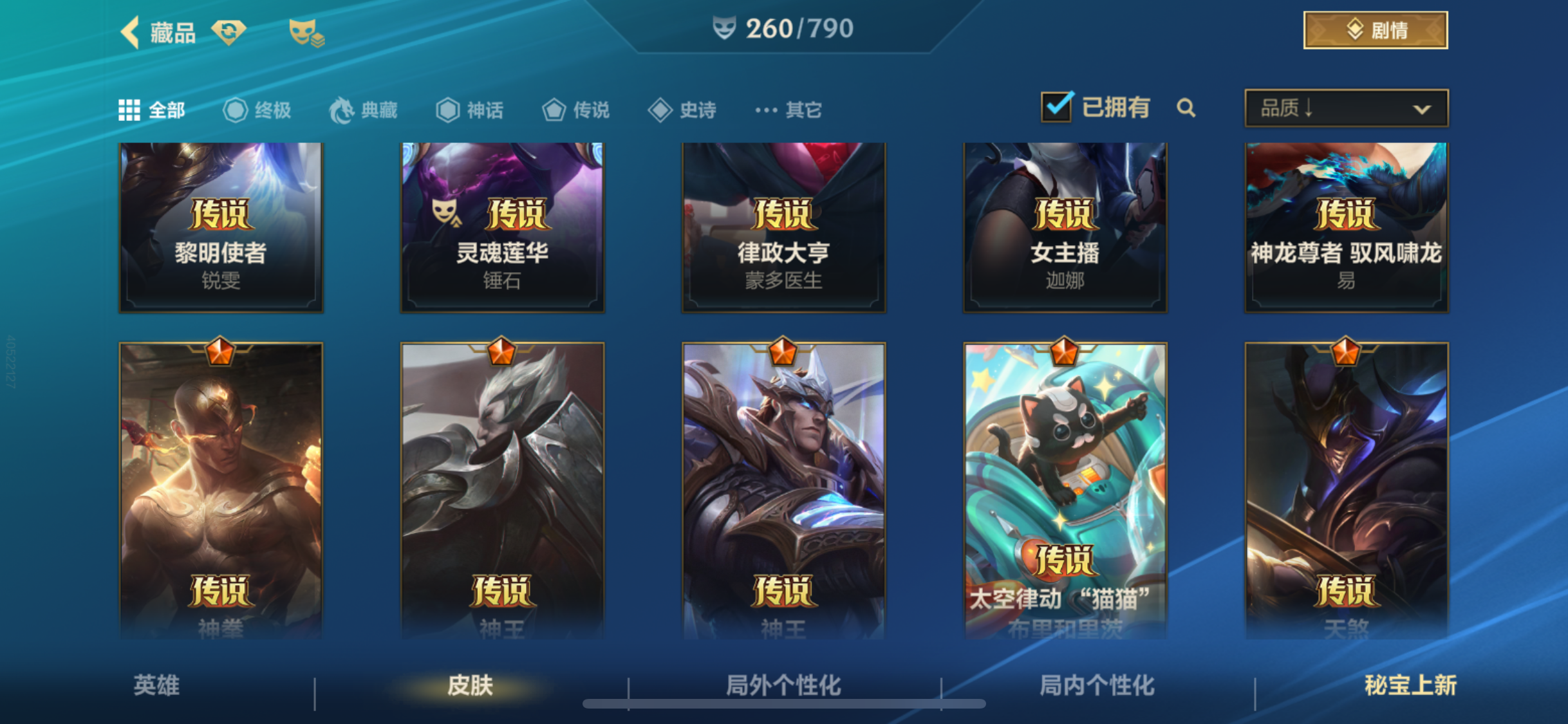 【苹果】 【允许排位】260皮|35传说|140史诗|兔牛虎年限定|涂鸦小队|龙战于野回程|主流英雄热门皮肤|可排位