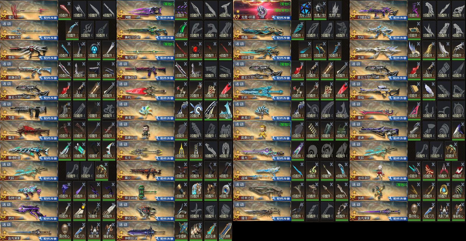 配件✨崩雷丨猩红丨巫灵丨渊瞳丨归墟血契丨天际丨海神之怒丨美杜莎之吻丨棱晶丨焚风丨鬼刃修罗丨创世星环丨闪击丨尘埃丨玄天丨弧光丨无踪 x2丨黑炎丨连城丨迷你派拉丨裂隙行者丨帝王战锤丨终末之弩丨伏虎丨灵狩 x2丨原石之力丨獠牙丨含光承影 x2丨仲裁巨剑丨