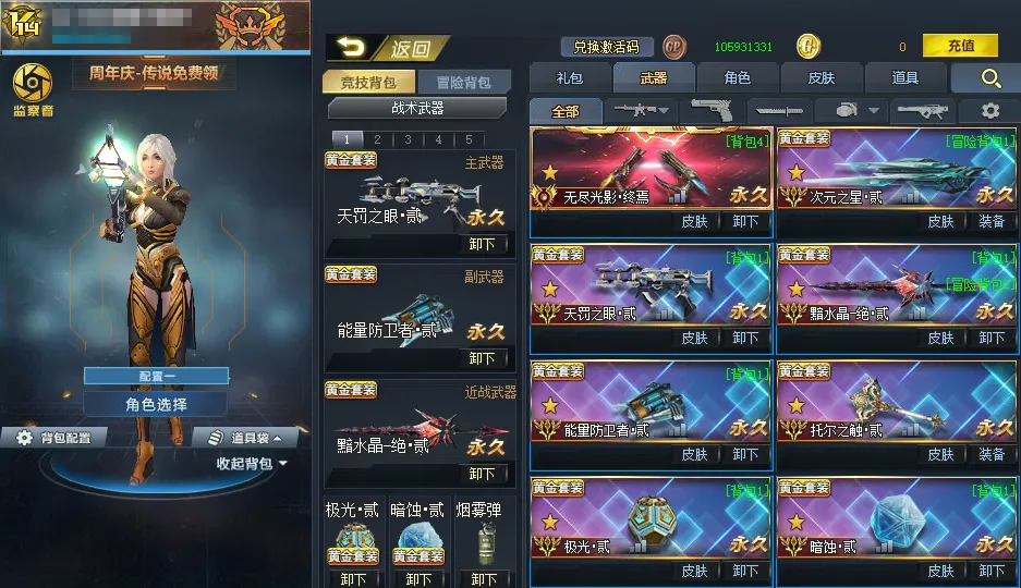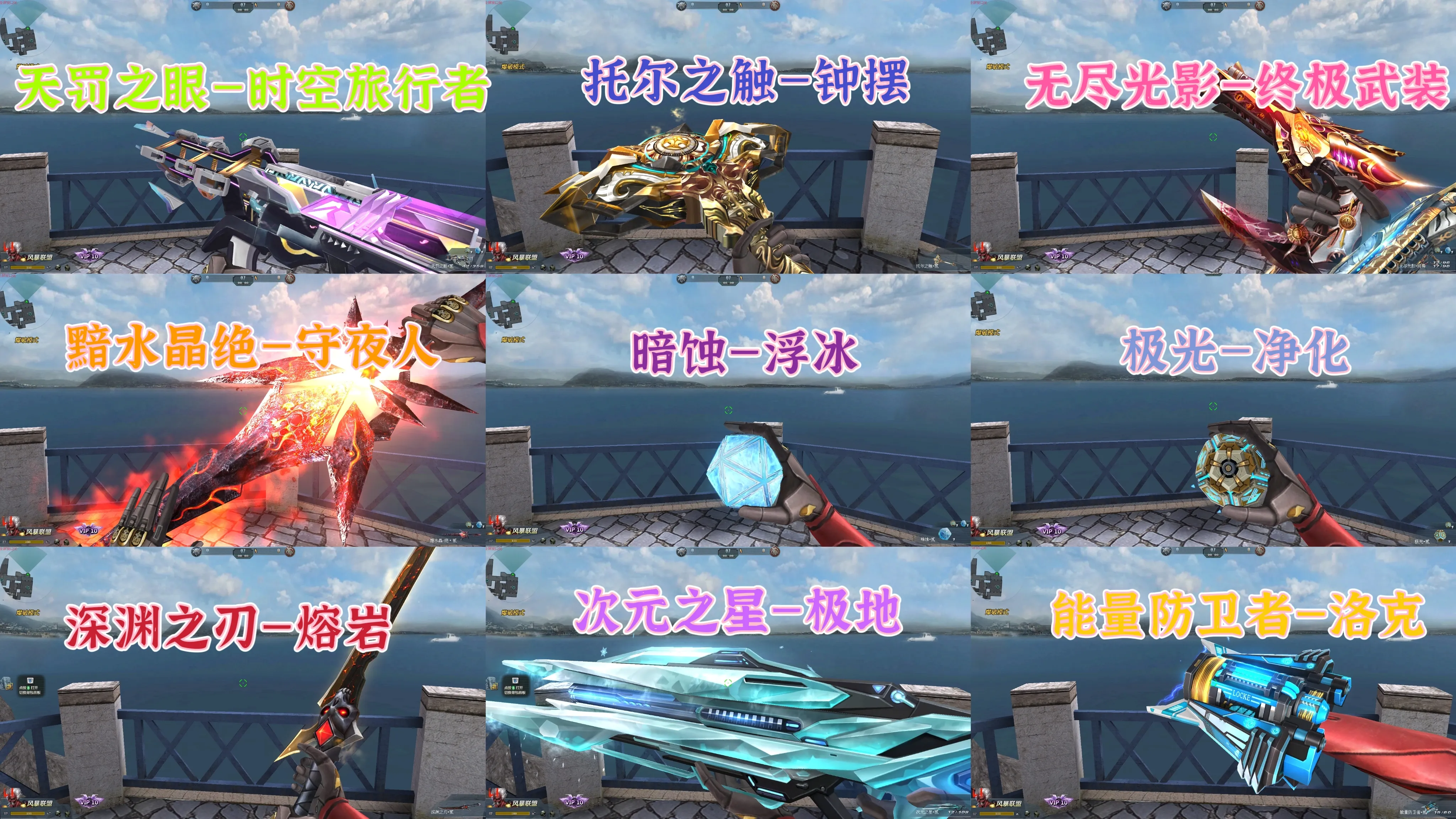 十款全服唯一皮肤分别是:天罚之眼—时空旅行者◆次元之星—极地◆无尽光影—终极武装◆黯水晶绝—守夜人◆暗蚀—浮冰◆极光—净化◆托尔之触—钟摆◆深渊之刃—熔岩◆能量防卫者—洛克◆赤电斗魂—钨金◆