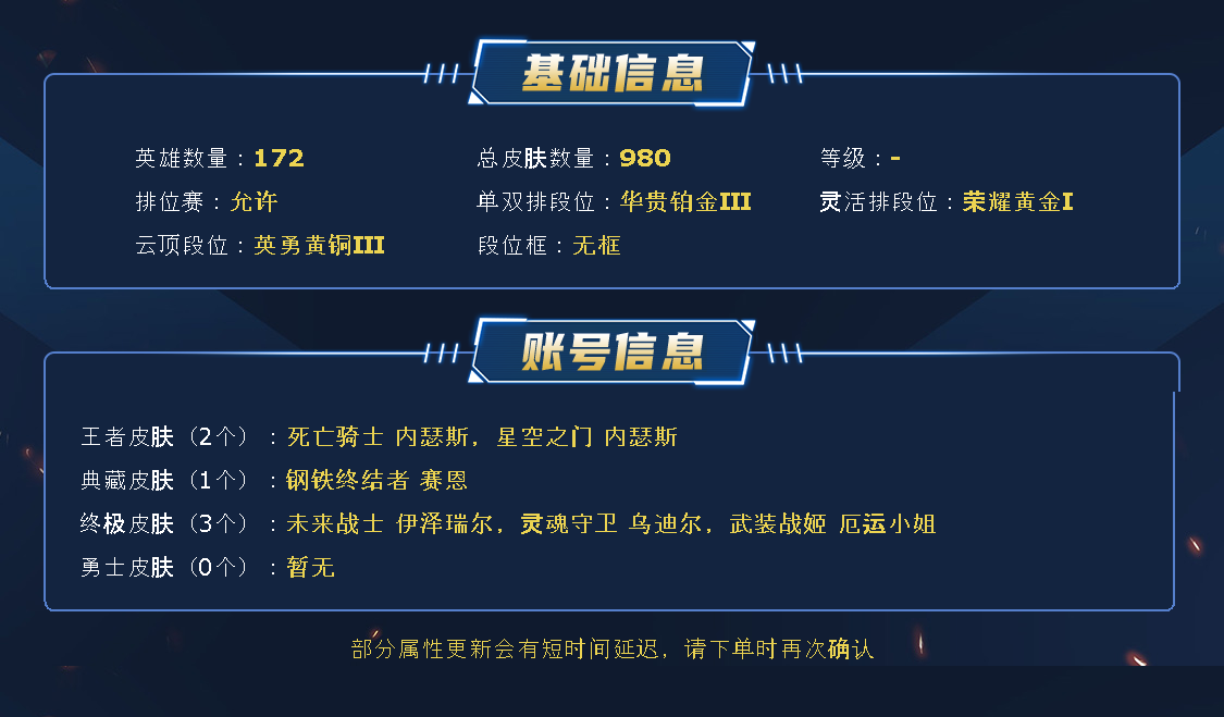 德玛西亚新皮肤号,圣洁神王,圣堂铁男,签名皮肤,最新神话皮肤,各种稀有皮肤。文明出租,请勿挂机。