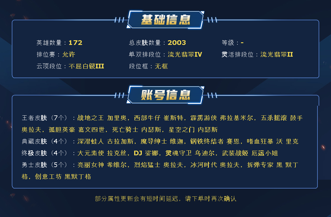 首页 > 英雄联盟 > /联盟五区 /德玛西亚 > 商品编号:415941