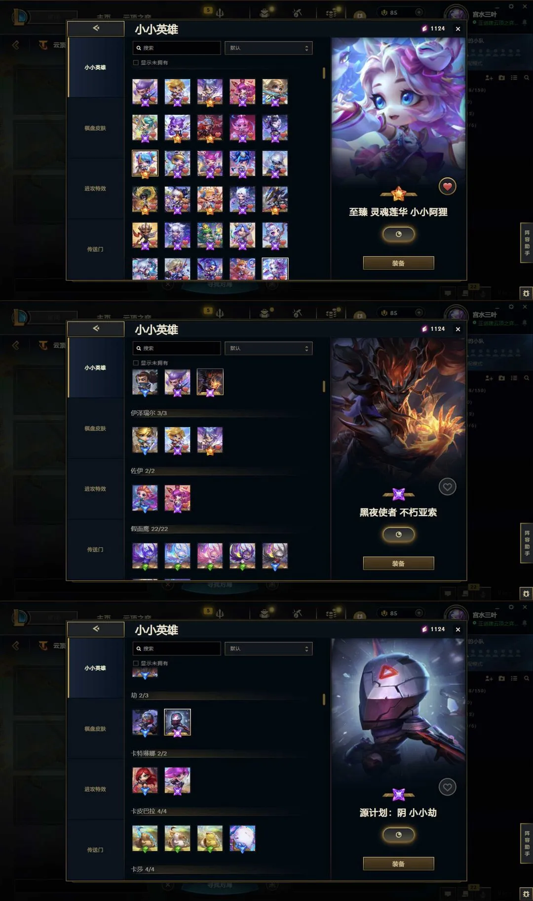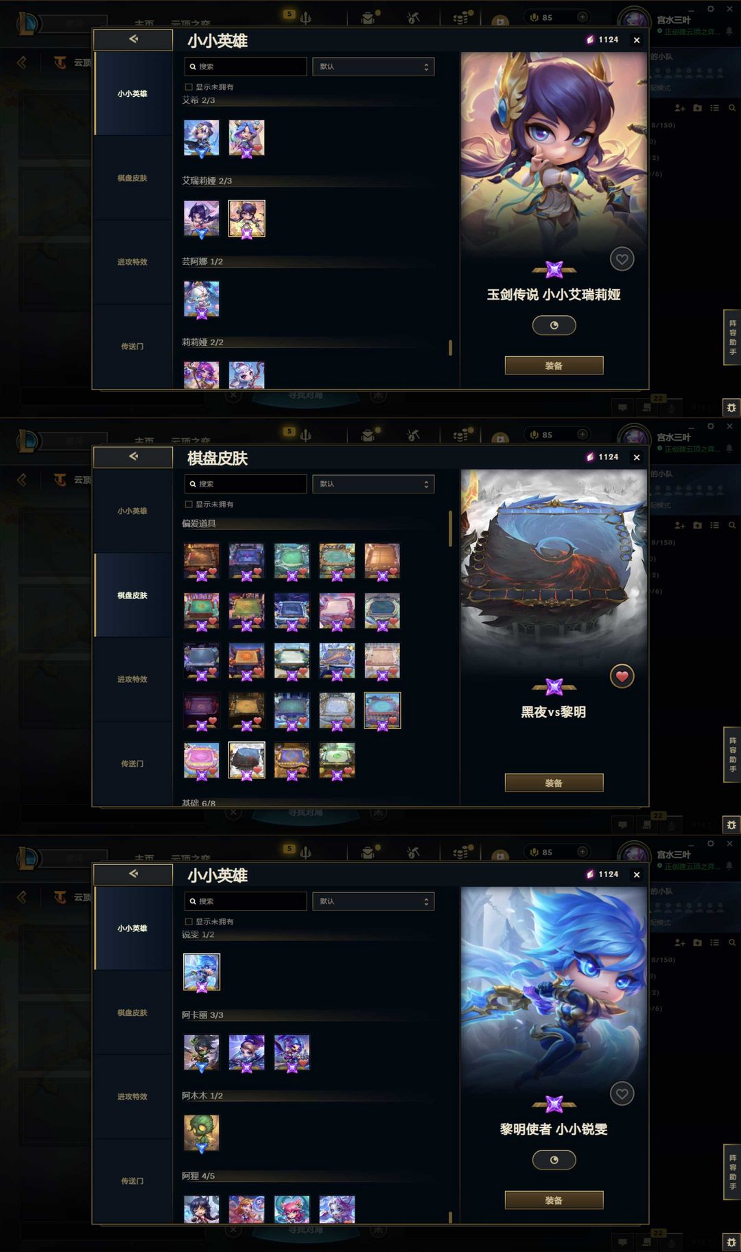 全云顶神话签名卡莎阿狸♥️圣堂莫甘娜神话幻想圣洁神王金鱼枫姬♥️黑夜黎明棋盘胖达巴适茶楼