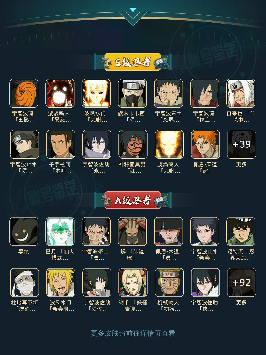 52S 104A 415忍者 宇智波止水「新春限定」/桃地再不斩「漂泊武士」/蝎 「绯流琥」/黑绝/佩恩·六道 「漂泊浪客」/波风水门「新春限定」/巳月 「仙人模式」/宇智波带土 「漂泊浪客」/迈特凯「忍界大战」/神秘面具男 「红夜之刃」/宇智波斑 「秽土转生·解」/自来也 「传说中的三忍」/波风水门「秽土转生」/千手柱间 「木叶创立」/宇智波止水 「须佐能乎」/漩涡鸣人 「九喇嘛连结」/漩涡鸣人 「暴怒·第六尾」/宇智波斑 「五影会谈」/宇智波斑「白面具」/宇智波带土「忍界大战」/宇智波佐助 「永恒万花筒」/佩恩·天道「超」/旗木卡卡西 「须佐能乎」/波风水门 「九喇嘛连结」