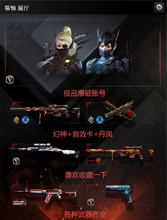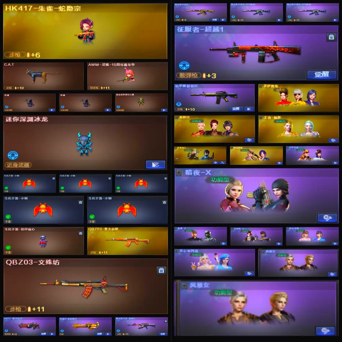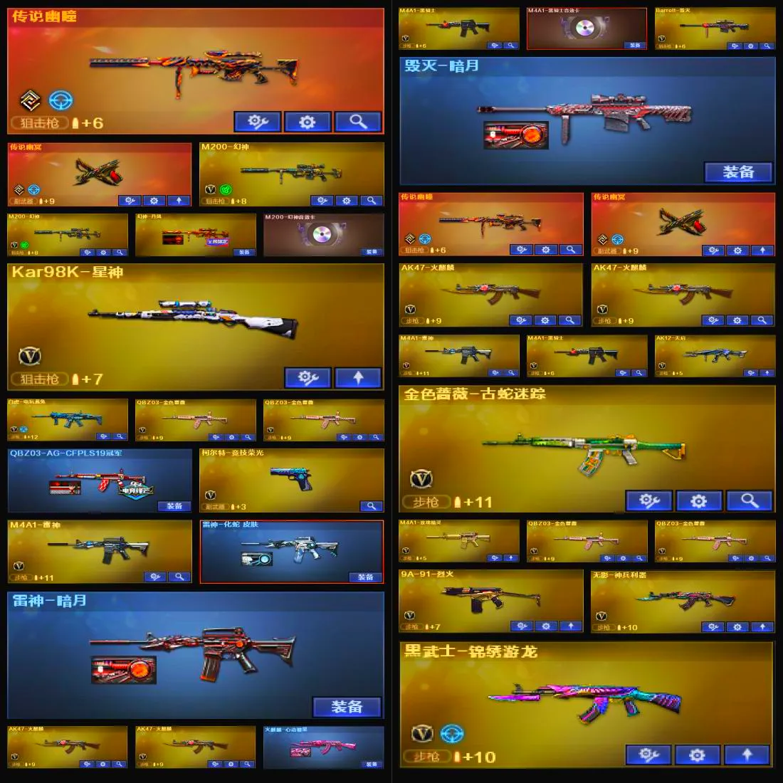 【重要武器皮肤】幻神-丹凤/毁灭-英雄计划 皮肤/毁灭-墨兰皮肤/毁灭-暗月/火麒麟-心动糖果/AK-47-雷神/雷神-化蛇 皮肤/雷神-暗月/QBZ03-AG-CFPLS19冠军/战神-流金岁月皮肤/战神-紫绶金章皮肤/战神-粉色甜心皮肤/修罗耀金皮肤