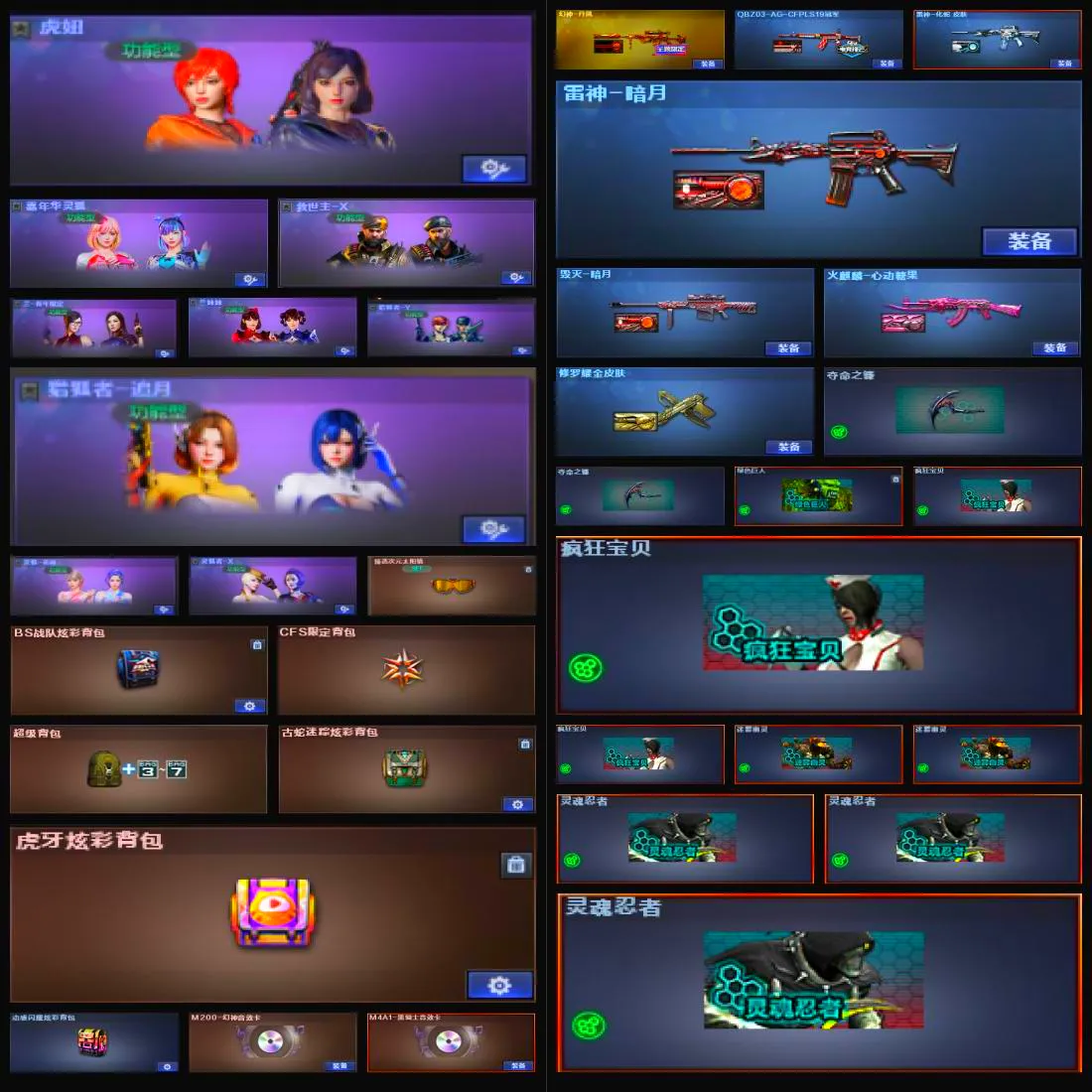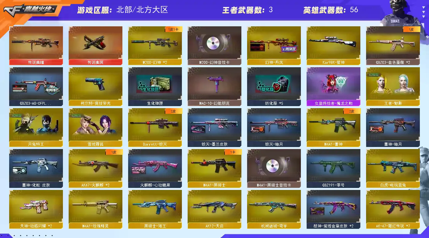 【其他重要武器】AK47-再燃火线/M4A1-英雄-能量核心/激光毁灭者III-白马银枪(2)/冰龙粉碎者-白马银枪/机甲撕裂者III/激光毁灭者III/AK47-冰龙粉碎者/QBZ03-锋芒破茧/HK417-赤龙/海浪AK47-浏览器/AK-47-二次元(2)/黄金AK-47(2)/AK-47-红龙/M14EBR-炎龙(2)/M4A1-PINK/M4A1-C-海浪/联想锋行黄金AK/M14EBR-情人节2020/M14EBR-赤血龙魂/9A-91-圣诞/AK-12-CFS2017纪念版/AK47-祥云苍龙/M4A1-紫炎/AK103-神秘黑洞/AK47-雷蛇/AK47-苍龙/凤凰之魂/AK47-死亡之翼/M4A1-XS-耀龙/AK47-SS/M4A1-破空冰刃/M4A1-XS-赤龙/红龙AK47/M4A1-圣诞2021/M4A1-肯德基/AN94-青花瓷/QBZ03-掌火萌橙/AK47-丹龙/M4A1-樱/百城AK47/AK47-朋克/AK47-轮回/M4A1-S-十周年/AK47-QT/AK47-B-十周年/9A91-蓝色骑士/M4A1-战龙/AK47-绚樱/AK47-SS-枪王排位/M4A1-SS-枪王排位/M4A1-电音/AK47-青龙/AK47-破空冰刃/AWM-A-彩虹/AWM-卡通/M200-萌杀/黄金AWM(2)/AWM-A/蓝色魅影/AWM-恶棍-枪王排位/巴雷特-情人节2020/雷蛇AWM(2)/Barrett-捣乱兔兔/AWM-Red/AWM-A-圣诞2021/Barrett-战龙/AWM-红色悦动/百城AWM/M200-落樱/凤凰之怒/M82A1-夏日/M200-牡丹/M82A1-水枪/M200-青花瓷/凤凰之力/AWM-S/Barrett-苍龙/M82A1-飞龙在天/FN弩炮-CFS2017纪念版/AWM-涂鸦/M200-大黄蜂/暗金M200/Barrett-耀龙/M82A1-红龙/AWM-T/AWM-恶棍/AWM-万圣节刀锋/M200-圣诞/Barrett-翔龙/AWM-蓝水晶/AWM-Pink/破天狂龙/末日裁决者(2)/封神放逐者III/MG3-翔龙(4)/KAC-赤烛/斯泰尔-巧克力(2)/死亡之眼-庆典-CFS 2021/EVO III-赤血龙魂/斯泰尔-CFS2017纪念版/EVOIII-萌杀/CPW-动力-潘多拉/P90-炫彩/试炼破坏者III/AA12-擎天柱III/神圣爆裂者-末日III/神圣爆裂者III/Spas-12-幻能朋克/AA-12-圣龙/SPAS-12-雷电核心/Spas-12-黑金/Anaconda-黑金神龙(2)/Cop357-萌杀/mac-10-蒸汽钟表/新USP-枪王排位奖励(3)/幻影Anaconda-枪王排位/COP-金蝉子-枪王排位/Colt1911-彩蝶(2)/蟒蛇-炫彩/愤怒公牛左轮-枪王排位/愤怒公牛左轮-丹龙(2)/真的是手枪/COP357-绚樱-圣诞/COP357-圣诞2021/COP-机甲刑天/Cop357-赤龙(3)/沙鹰-雷蛇/柯尔特-百城/COP 357-青龙/COP357-朋克/MAC-10-幻能朋克/USP-黑大圣/COP-青帝/MAC-10-涂鸦/Anaconda-炽焰核心/沙鹰-青龙/Anaconda-雷电核心/幻影沙鹰-枪王排位/COP 357--绚樱/沙鹰-枪王排位/金刚伞-电玩红兔/招财猫-枪王排位/收割者-枪王排位/军用铁锹-丹龙/魔能镰刀(5)/虹光丛林匕首-枪王排位/丛林匕首-枪王排位/猫猫手套/匕首-幻能朋克/尼泊尔军刀-战龙/不灭之拳/丛林匕首-卧龙/军用铁锹-飞龙在天/高爆手雷-诺拉/胜利奖杯闪光弹-枪王排位(3)/惨叫鸡高爆手雷/生化手雷-小钢(5)/胜利奖杯手雷-枪王排位(2)/生化手雷-机甲核心/闪光弹-枪王排位(6)/胜利奖杯烟雾弹-枪王排位/黄金刀锋手雷/强化版迅捷虫手雷/红色诅咒娃娃手雷/闪光弹-小乔