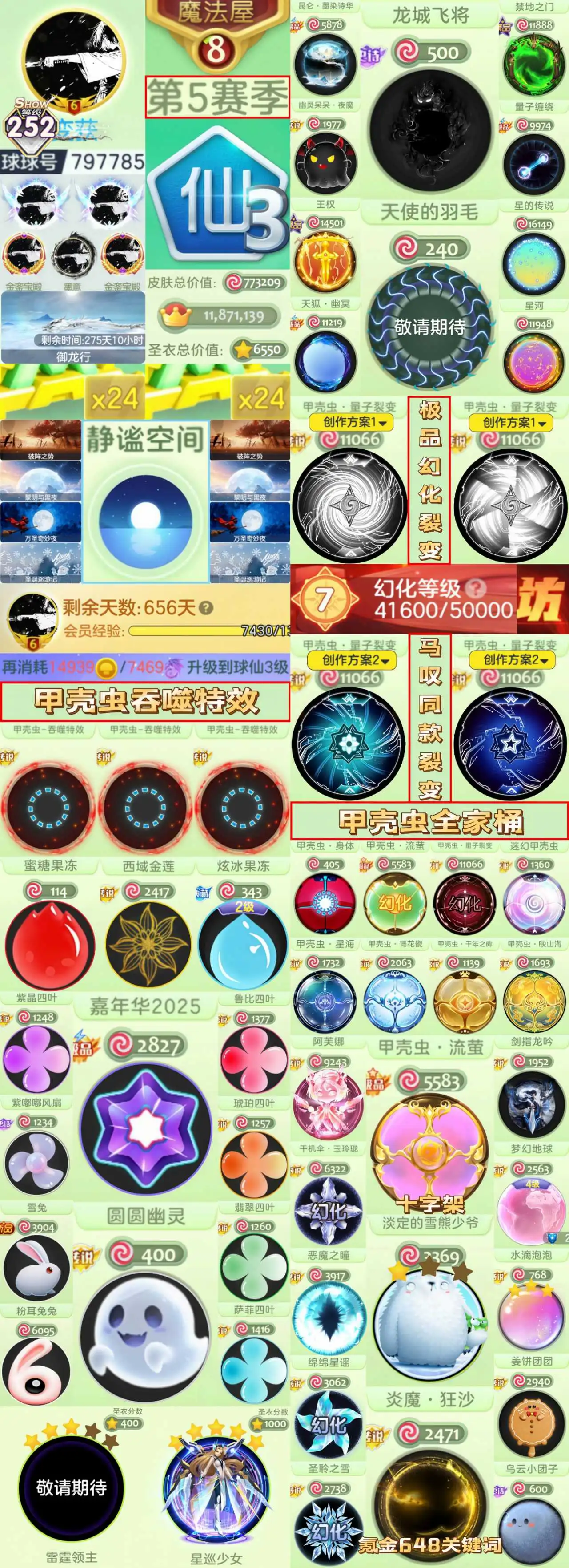 超氪金幻化顶配皮【嘉年华【幻化全红黑白量子甲壳虫/双系统形态切换*幻化满级十字架粉色甲壳虫】主题年卡