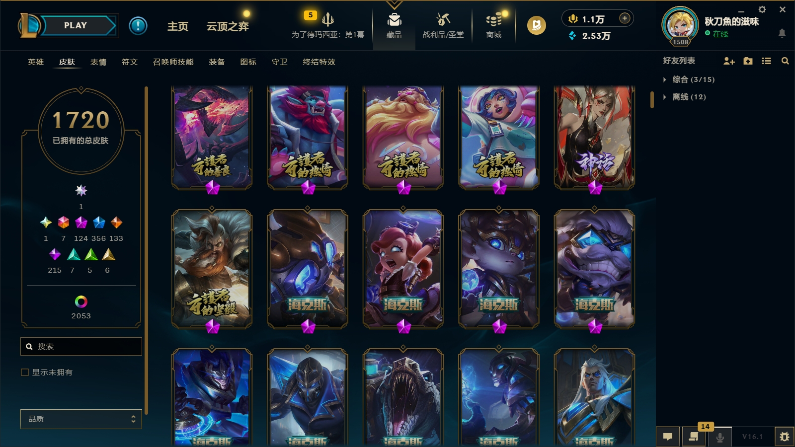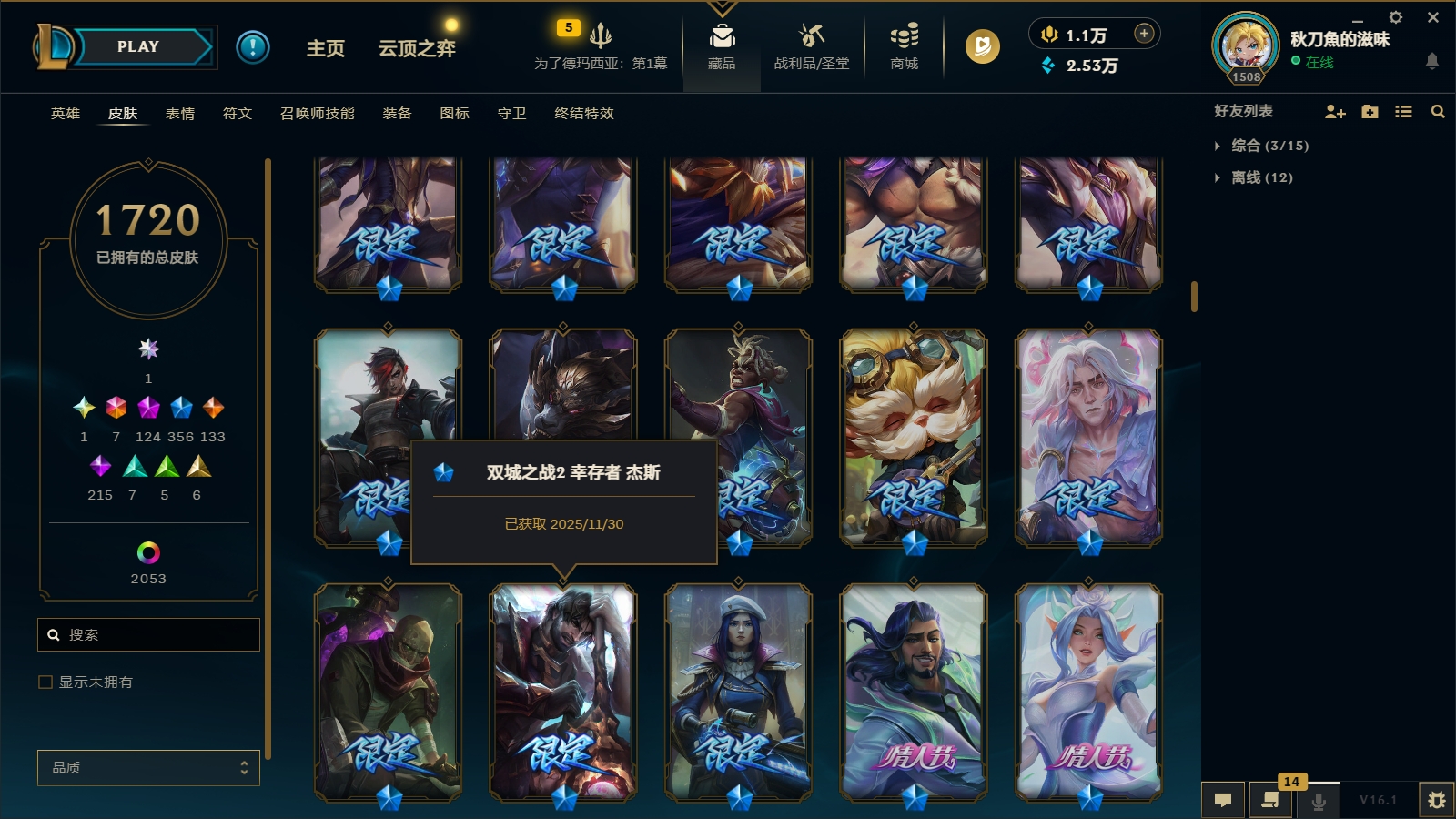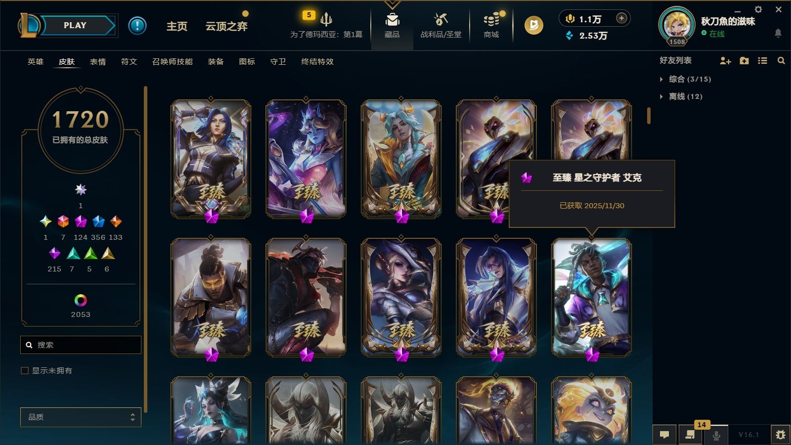 3900皮肤〓124至臻海克斯〓联盟不朽阿狸〓圣堂金克丝〓圣天龙李青〓摄魂龙瞎〓双城之战全套〓海之歌