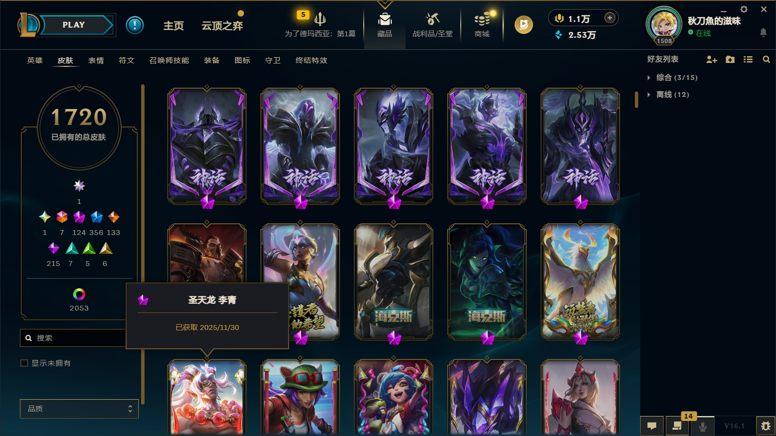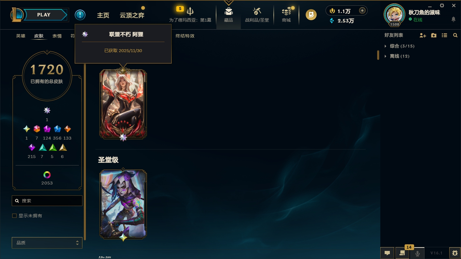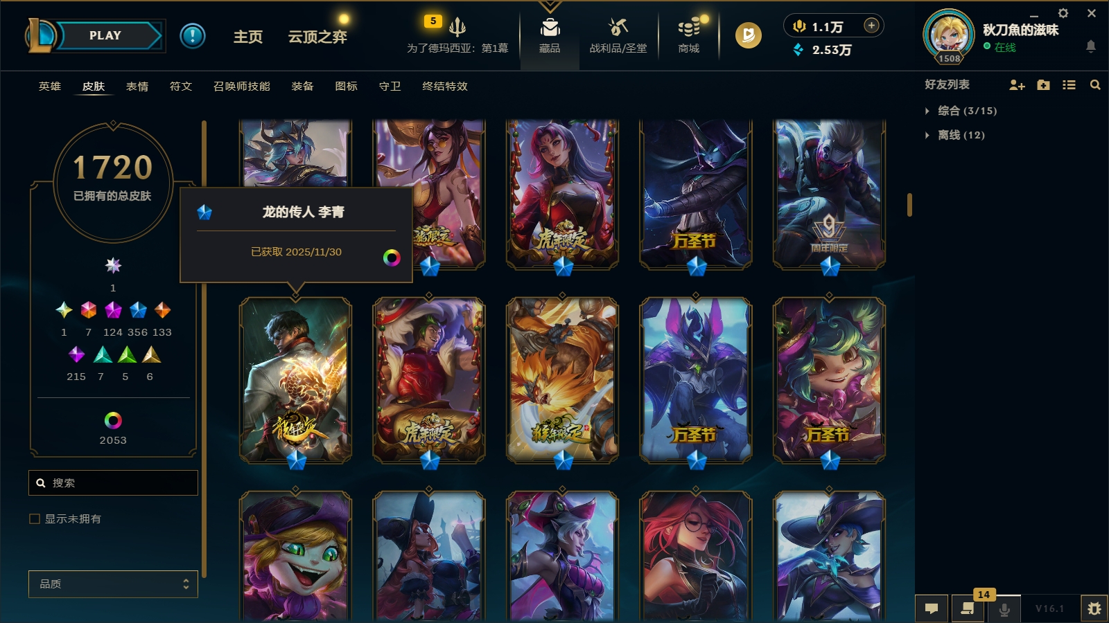 3900皮肤〓124至臻海克斯〓联盟不朽阿狸〓圣堂金克丝〓圣天龙李青〓摄魂龙瞎〓双城之战全套〓海之歌