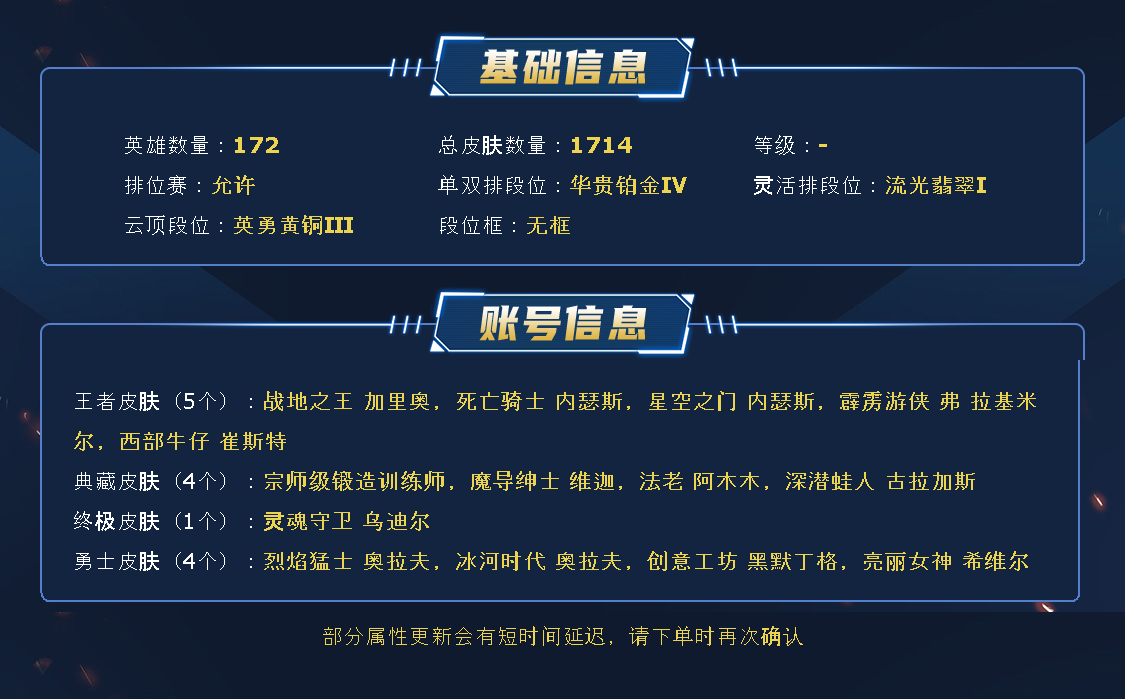 ~~喜欢记得收藏~~可排位~~1800皮全英雄~~租之前尽量查一下游戏ID,确保段位是您需要的,避免浪费您的时间~~请勿挂机逃跑故意送人头,谢谢合作,谢谢~~