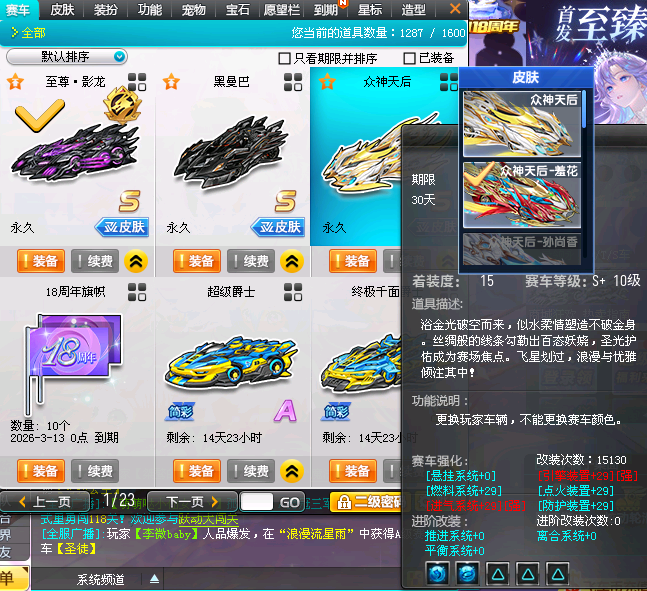 电信区 可排位 S车⑦辆,满改龙车,满改火鲤,满改众神天后羞花,小兰仙+10,小白龙+10,白金神兽+10,骑宠灭世龙王,青丘仙狐,银魂豹,冰灵龙还有+10的宠物都能骑。