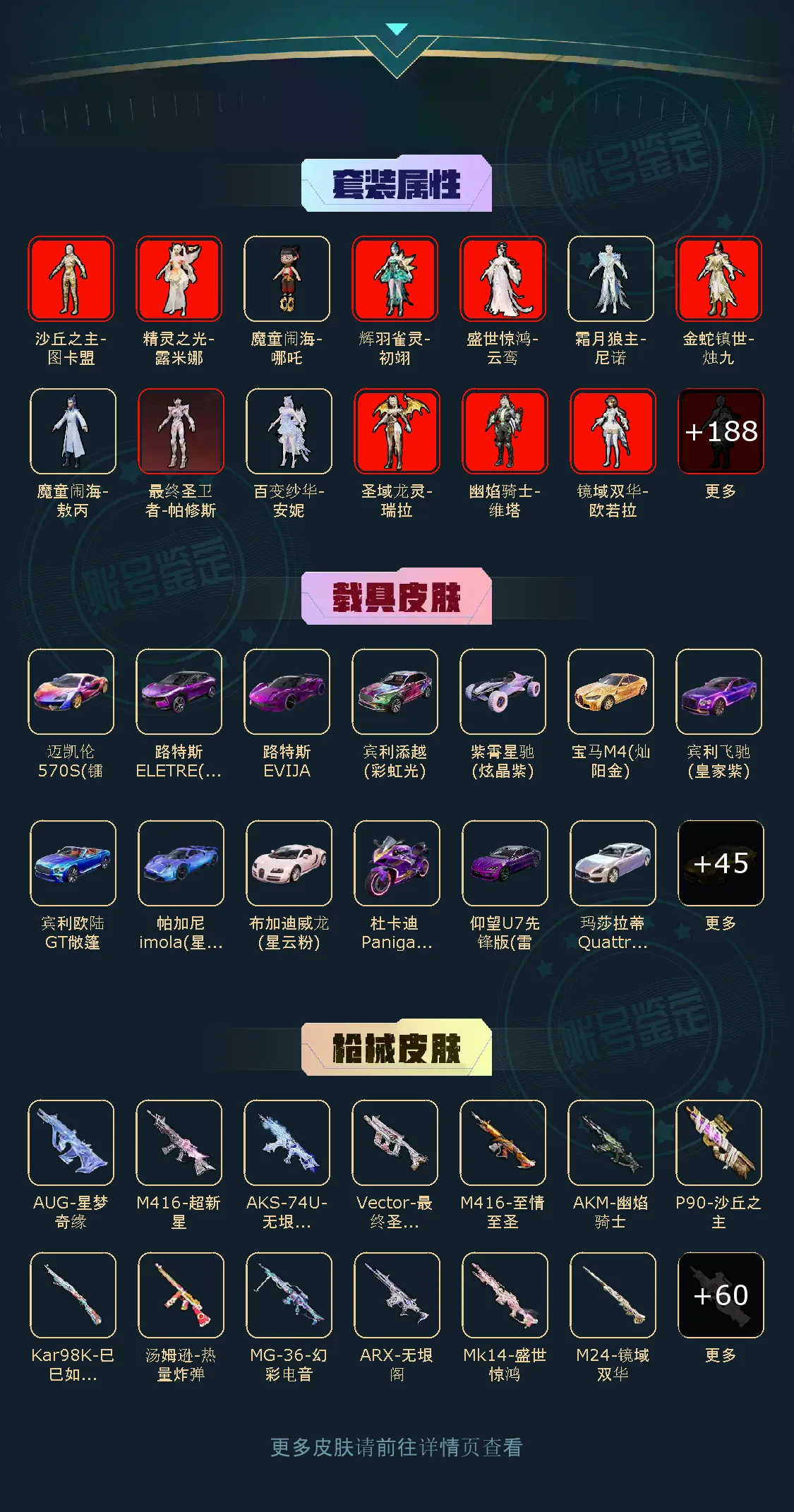 189粉,58载具,69特效枪,768套装,23王牌印记