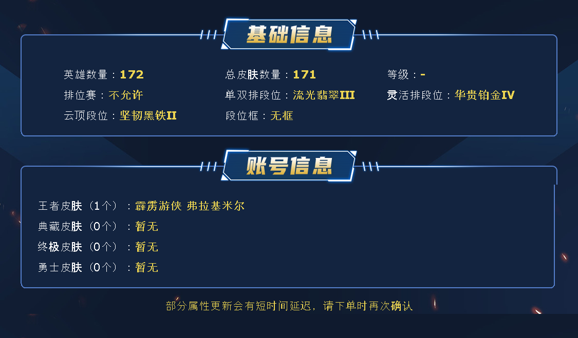 请看好区再进游戏,进错区维权描述不符一律黑名单。 租之前查下游戏ID,确保段位是您所需要的,避免浪费您的时间~请勿挂机逃跑故意送人头,恶意逃跑挂机直接永久黑名单!谢谢合作,谢谢。