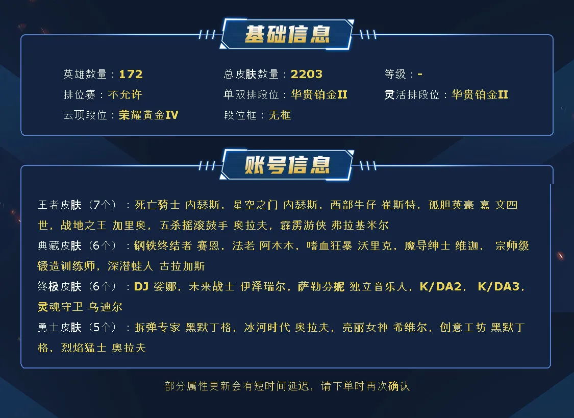 █海克斯满级█允许排位█2202皮█艾欧尼亚█198限定█极品█龙虾琴刀█34臻彩█全英雄█极品号█