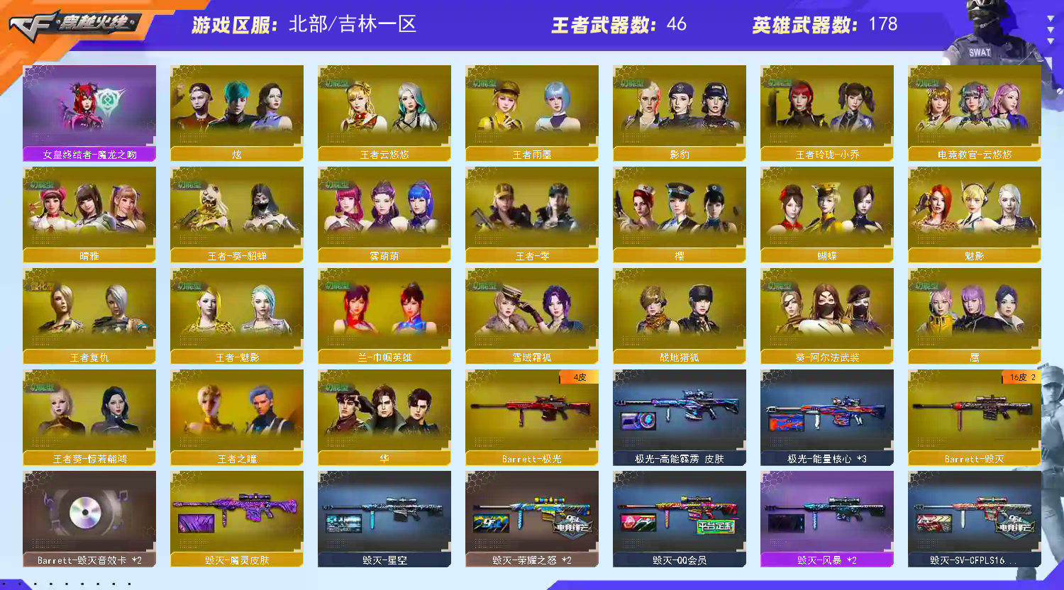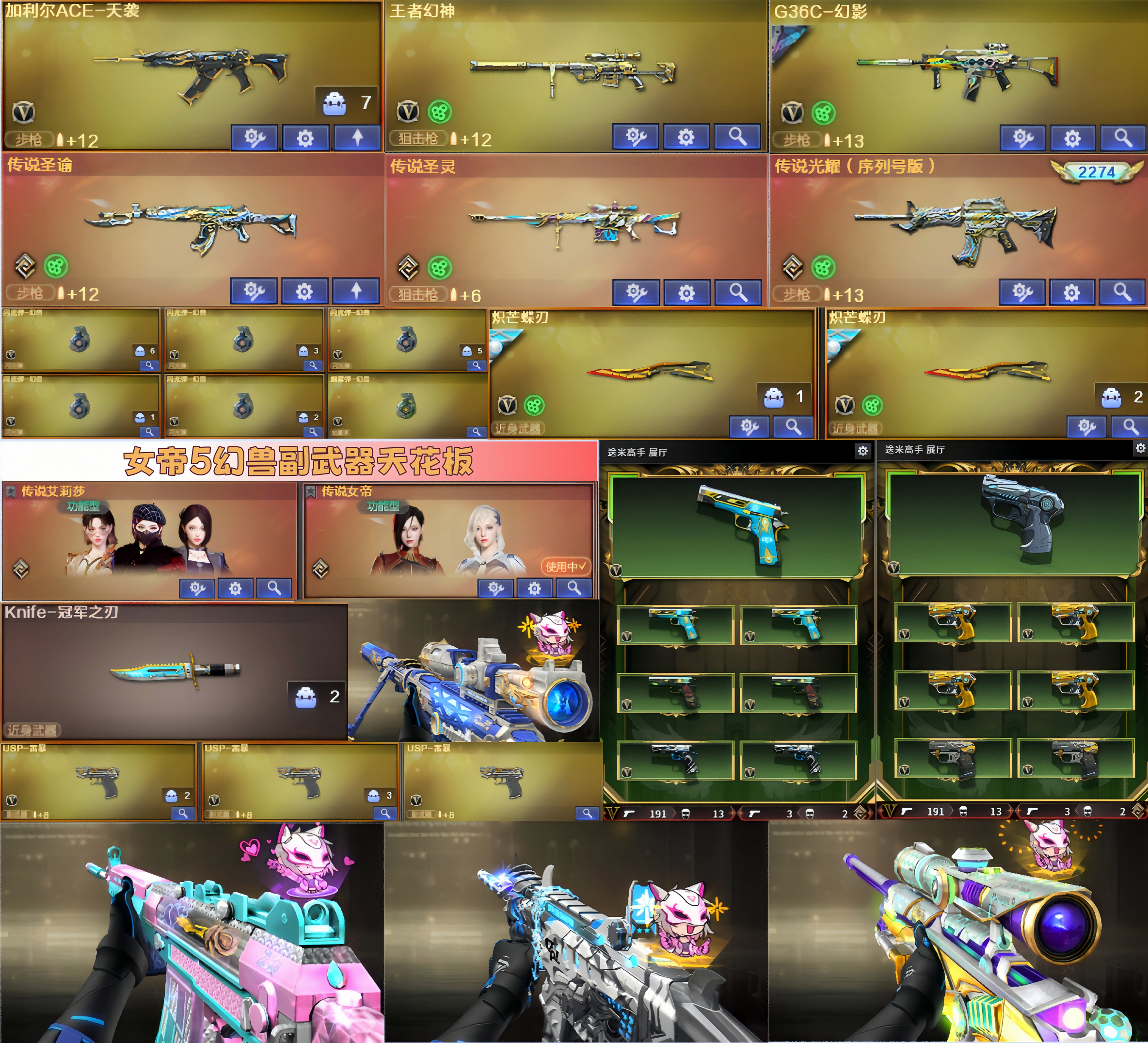 女帝5套幻兽❥3冠特满配副武器❥加利尔G36传说圣谕❥3幻神24质量皮❥QBZ宠儿白鲨白虎❥平台全套