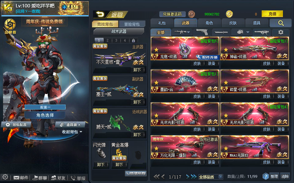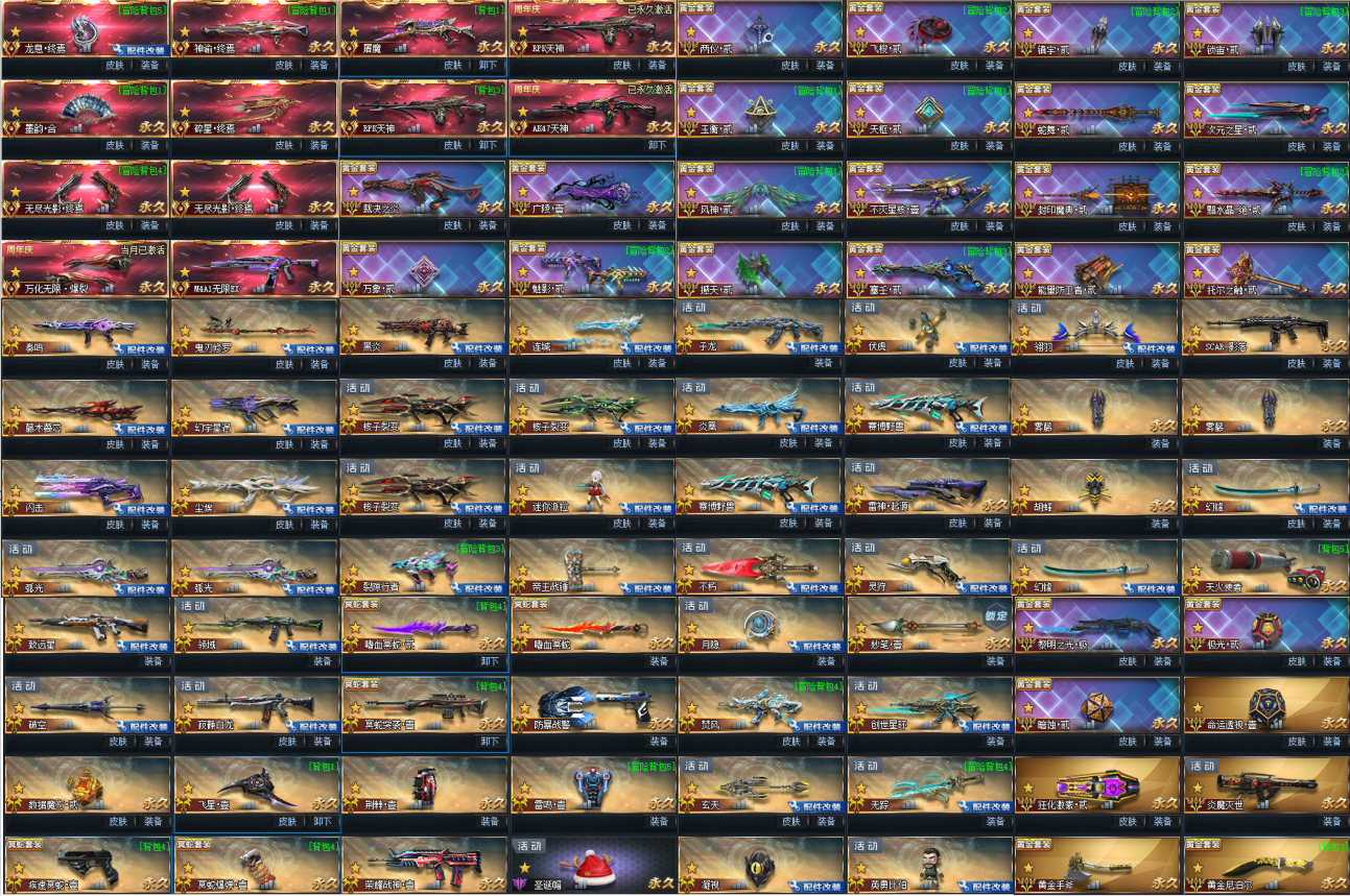 【配件武器】满配鬼刃修罗、满配藤木蔓芯、满配核子裂变、满配迷你派拉、满配裂隙行者、满配帝王战锤、满配伏虎、满配赛博野兽、满配炎凰、满配幻锋、满配焚风、满配月隐、满配凝视、满配玄天、三配奏鸣