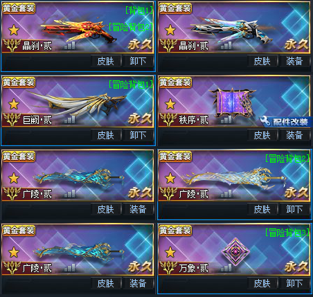三强化满配巨阙贰——满瑶光——满星珀——满裁决——满次元——三广陵——双魅影等等......