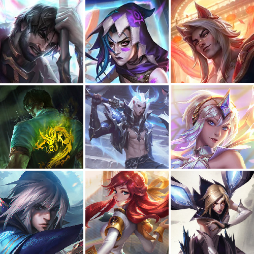艾欧尼亚2600皮,1637原皮4色龙瞎,圣堂金克斯腕豪,119神话,90张臻彩。342限定等。