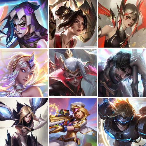 殿堂传奇卡莎/殿堂传奇薇恩/殿堂传奇乐芙兰/圣堂金克丝/幸存者杰斯/救世主维克托/IG冠军套/FNC冠军套/SSW冠军套/FPX冠军套/SSG冠军套