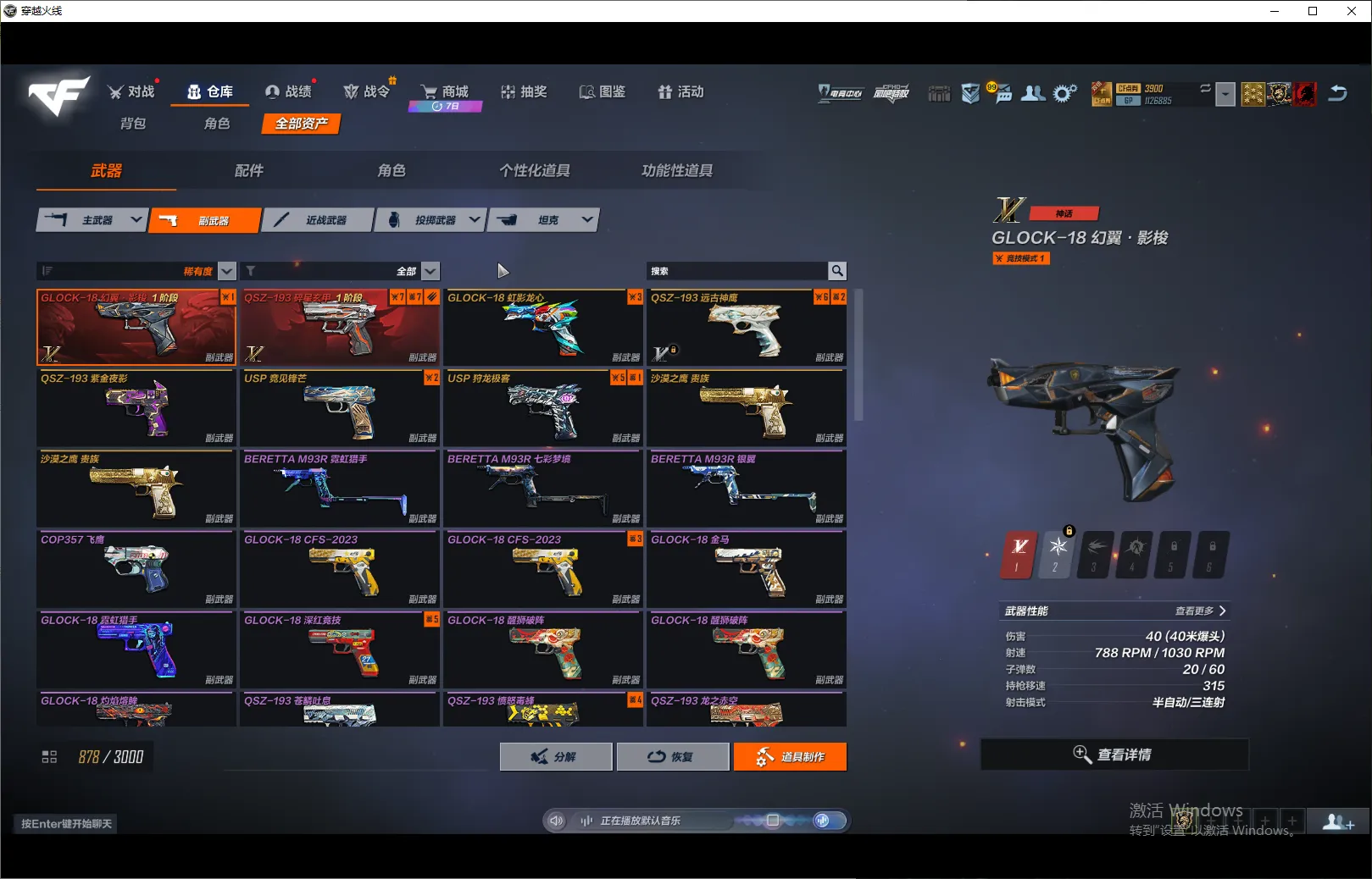 副手:GLOCK-18幻翼·影梭1阶段 QSZ193碎星玄甲1阶段 GLOCK18虹影龙心 QSZ193远古神鹰 QSZ193紫金夜影 USP竞见锋芒 USP狩龙极客 沙漠之鹰贵族X2