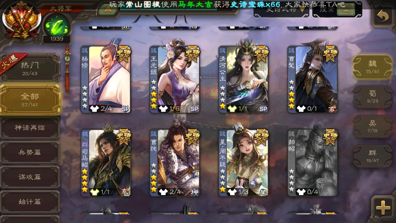 71/史诗武将数量