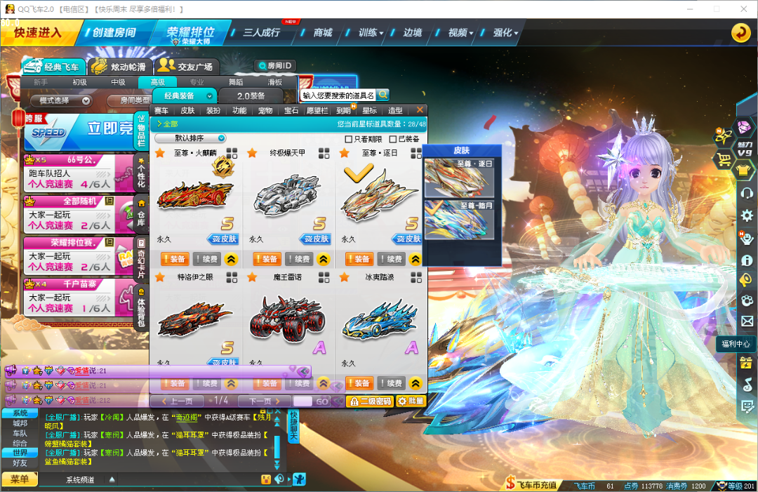 - 极品9S/19A车:终极爆天甲逍遥/特洛伊之眼洛基/风之使者兰/天行穿梭者/魔王雷诺/裁决者/冰夷踏浪/御炎神兵/普雷/地狱雷诺/炙热q吧/神风玉堂等满改满竞速宝石,满改带4级宝石C车飞碟