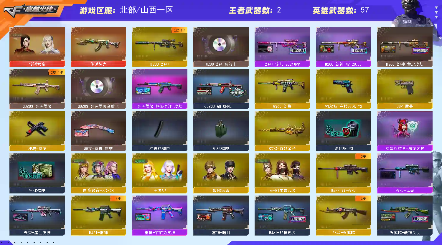 传说辉光4防女帝✅幻神三件套(3皮)QBZ裁决三件套三皮✅白虎✅2022幻神音效卡+裁决音效卡✅13个音效卡