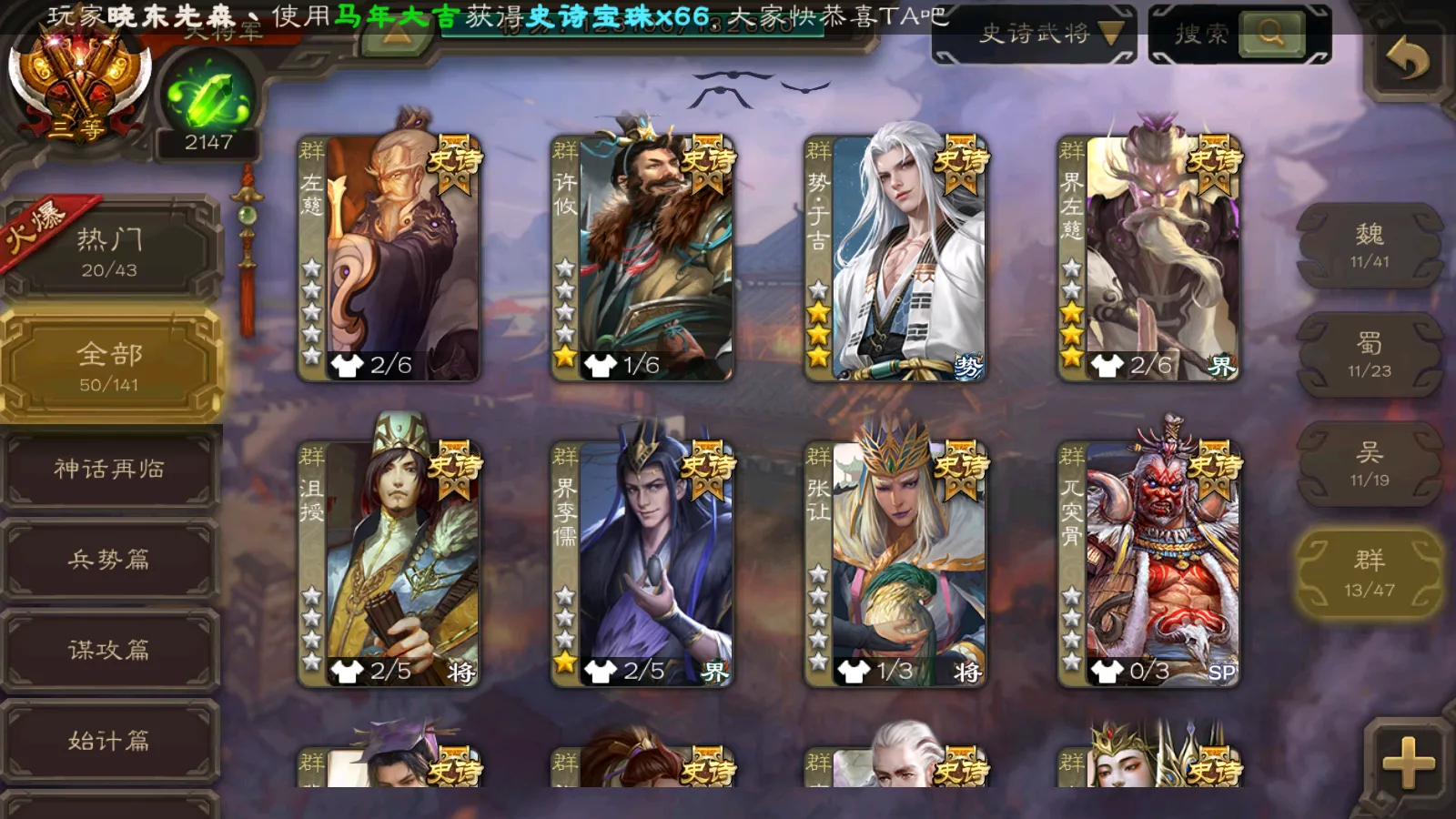 50/史诗武将数量