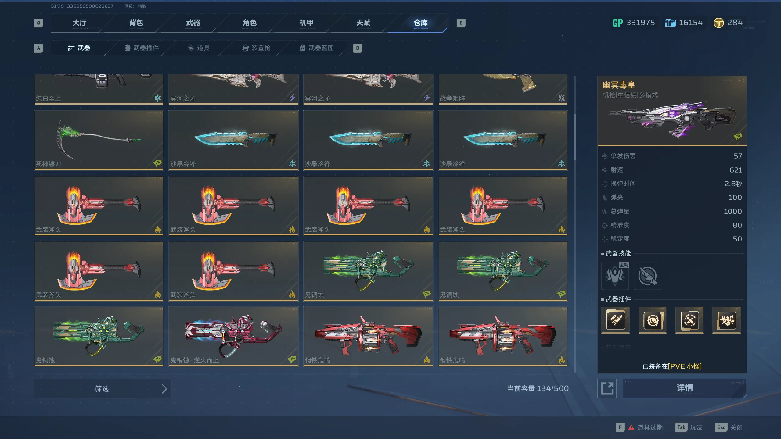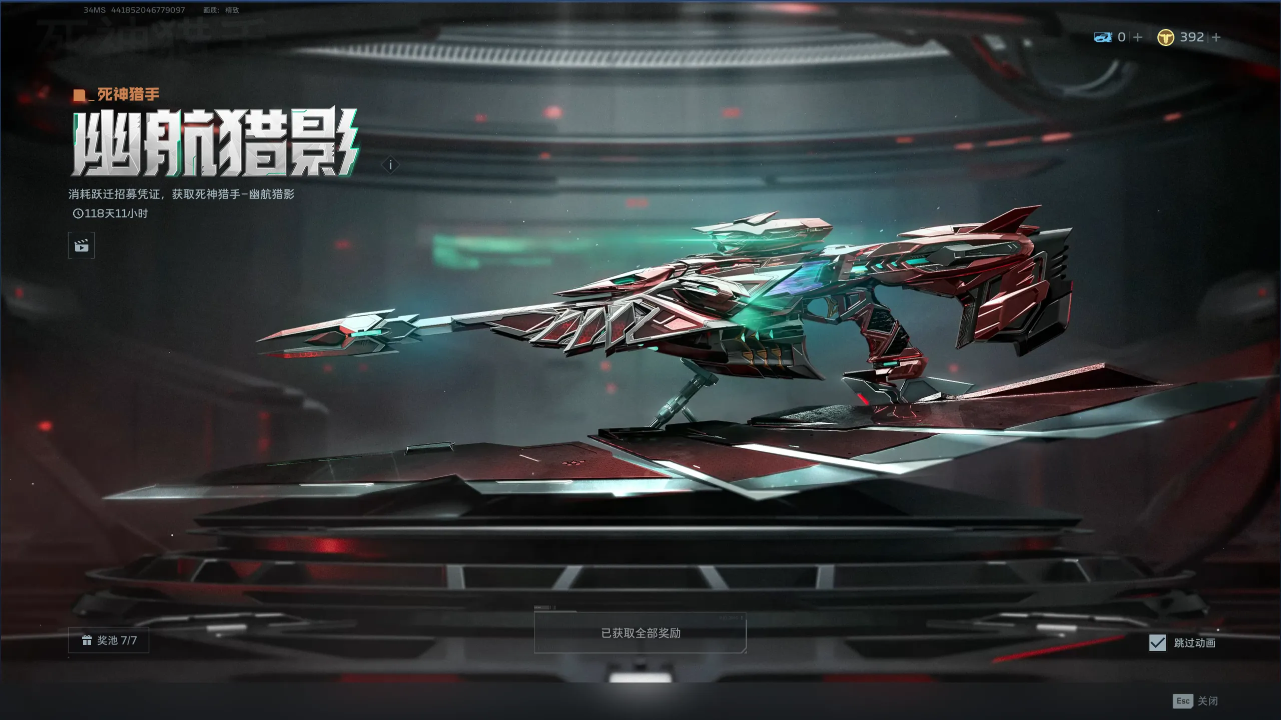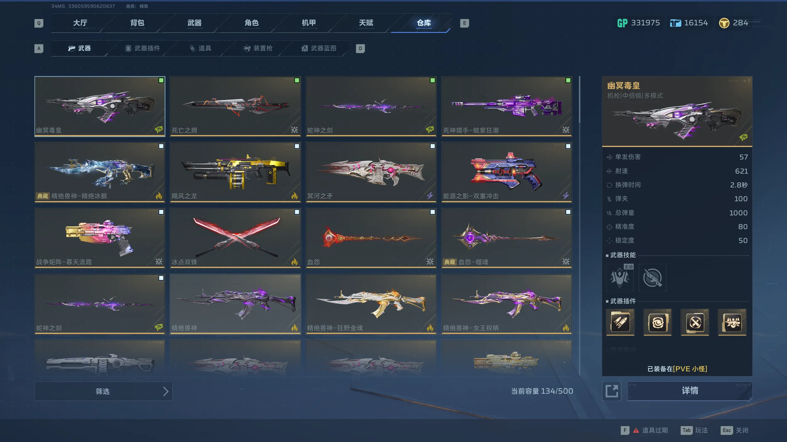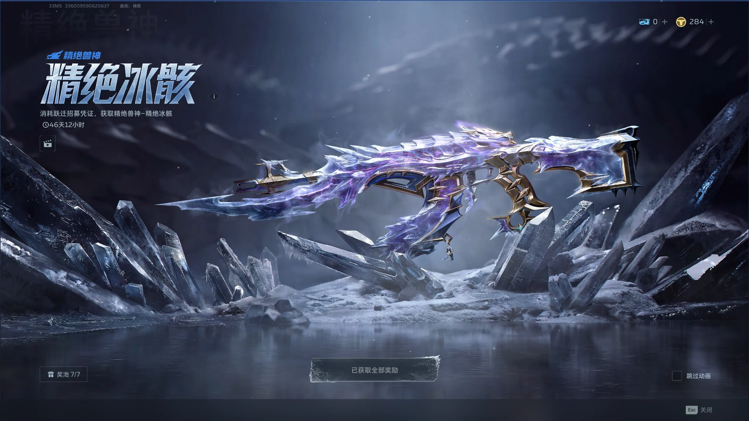 【武器】死神猎手-幽航猎影、幽冥毒皇、死神猎手-眩紫狂潮、精绝兽神-精绝冰骸、飓风之龙、冥河之矛*3、能源之影-双重冲击、战争矩阵-暮天流霞、精绝兽神、精绝兽神-狂野金魂、精绝兽神-女王权柄、纯白至上、战争矩阵、鬼铜蚀*3、鬼铜蚀-逆火而上、钢铁轰鸣*2、春雷震、苔色暴风、超级复合弓、乘风快递*2、振弦、火山口、胜利誓约、雷霆999*3、黄金Z型步枪、胜利誓约-绿潮、死亡猎手*2、裁决之眼*2、死亡猎手-狩、飓风之锤*3、飓风之锤-沙漠涂装*2、沙丘之怒、沙丘之怒-红铁印记、黎明之光、黑克勒45*3、共晶点、共晶点-野草*2、钢铁骑士、光荣之路-祝岁、黑克勒45-呐喊、梦魇、幽冥毒王、幽冥毒王-绿潮、幽冥毒王-金牌大哥、雷霆之影、乘风快递-航迹、收割者*2、生命线、生命线-蝶与寰宇、天鹅之舞、天鹅之舞-翎蓝之翼、杜瓦瓶*2、杜瓦瓶-白铃、维和者、维和者-攀登、铁砧、自动步枪-枪神*2、曙光印记、制式手枪