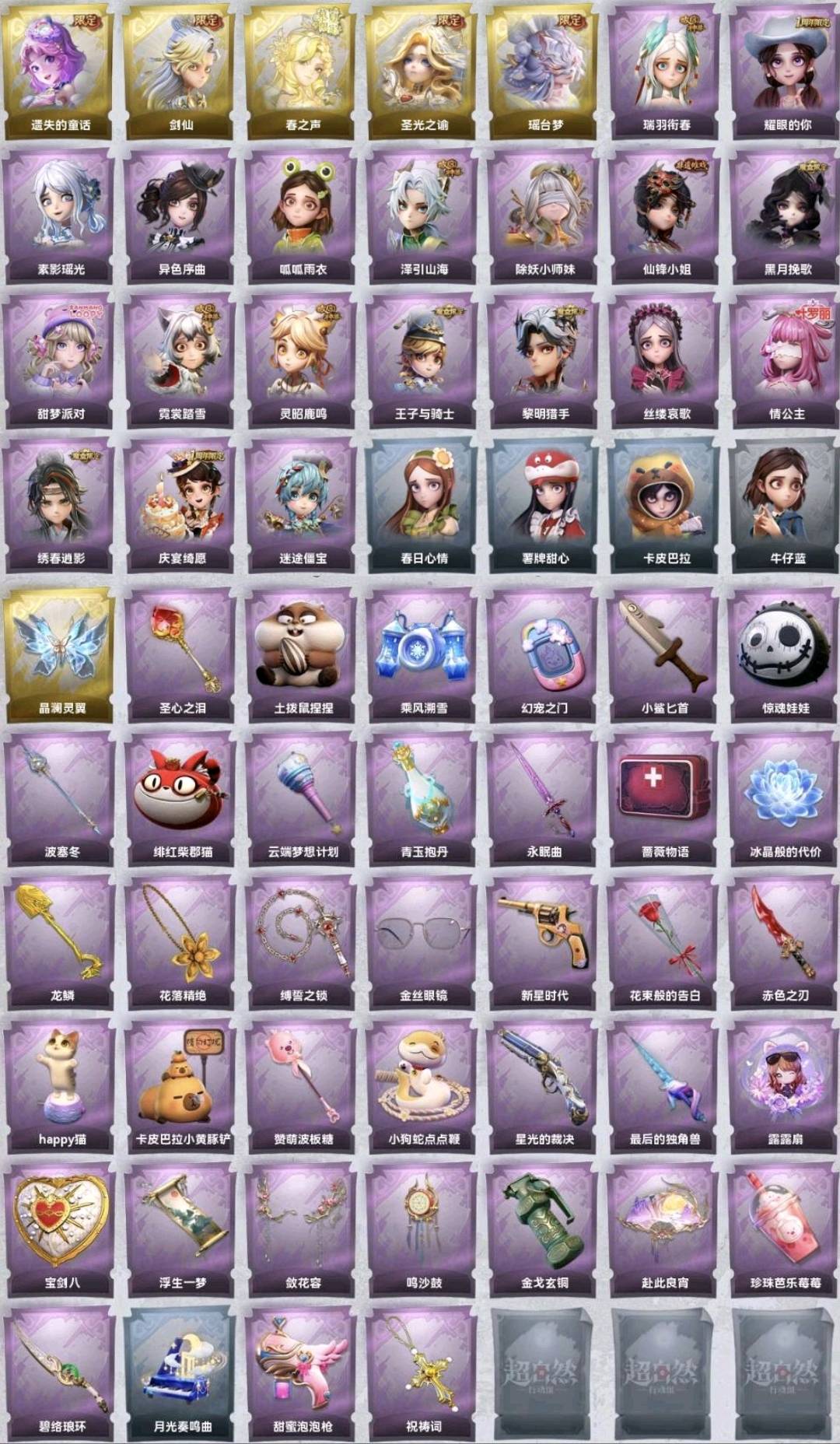 【全平台】 5金20紫晶澜灵翼剑仙瑶台梦春之声圣光之谕童话泽引山海绣春逍影黑月挽歌情公主莓果陷阱仙锋小姐