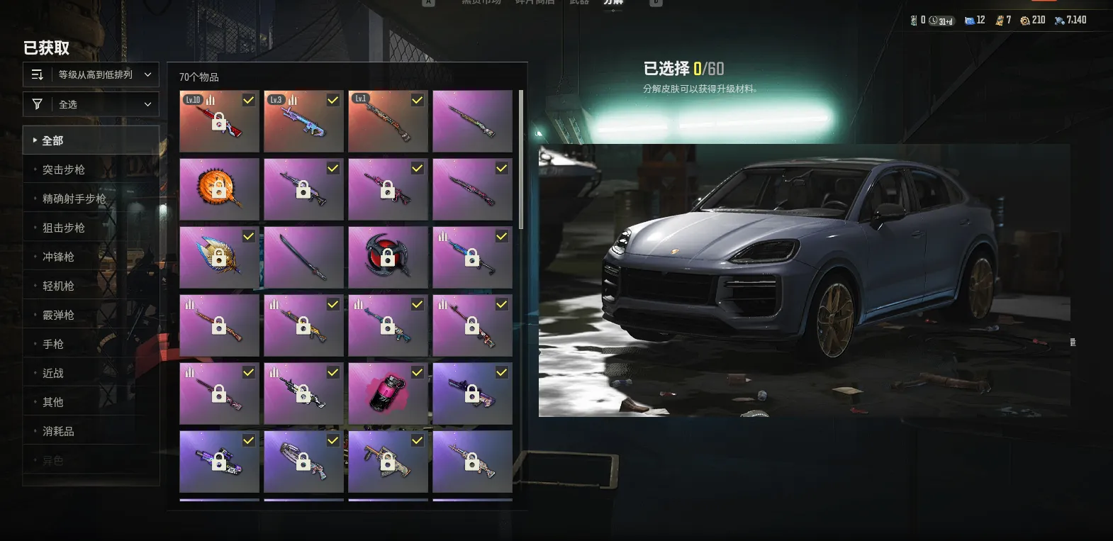 二级密码123456✅1000皮可排位-满级⑩级无信号M4✅③级魔咒之力MK12✅保时捷跑车✅①级烈