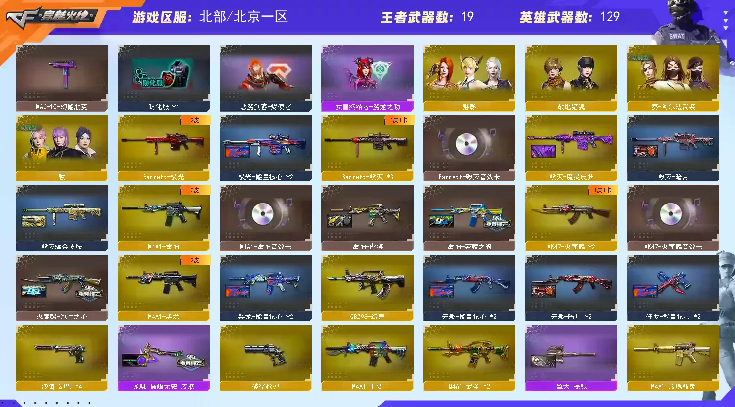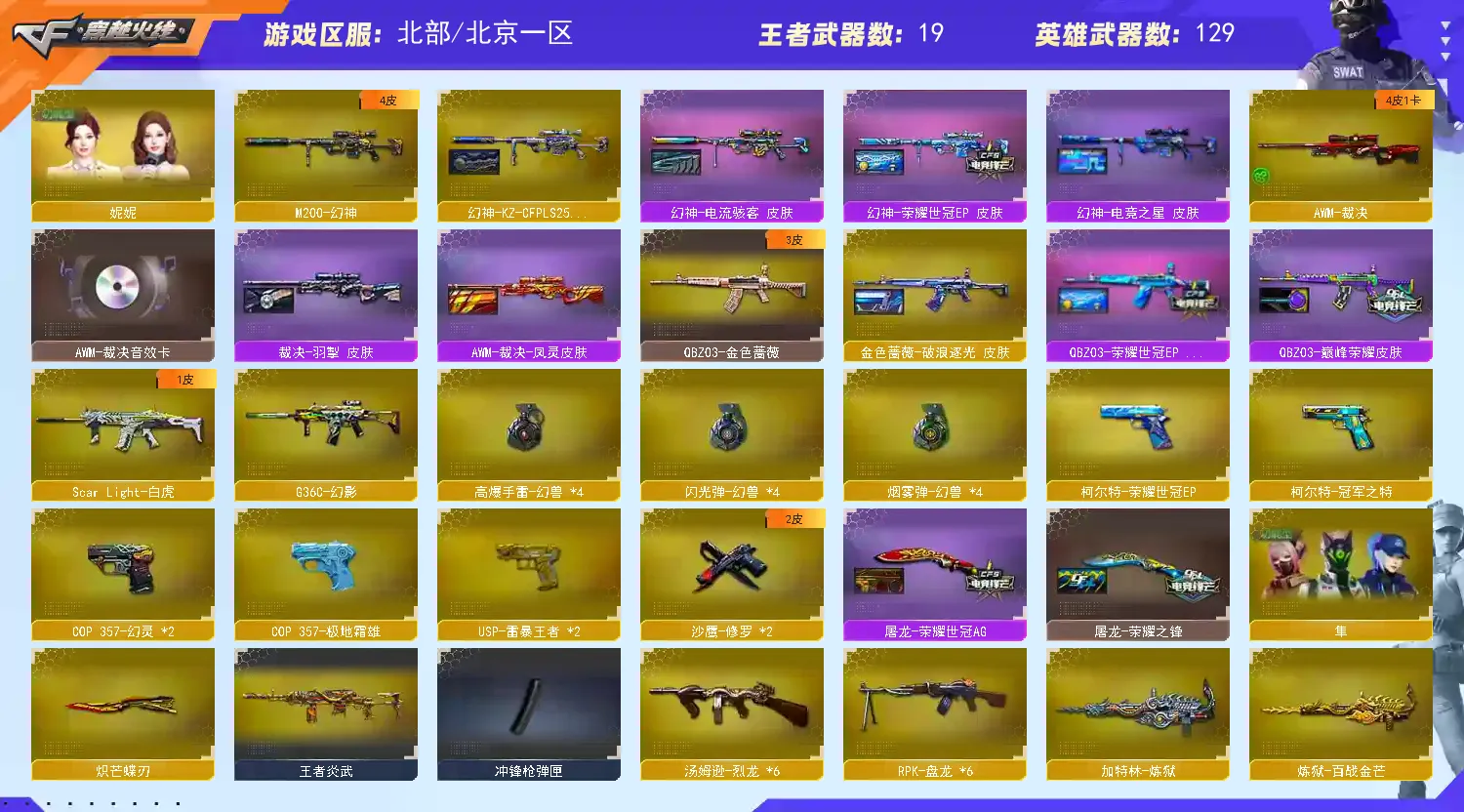 可排位,妮妮EP世冠套4幻兽幻神KZ、EP4皮裁决三皮3件套毁灭雷神火麒麟3件套QBZ2皮白虎G36幻灵套冠特EP柯尔特,王者雷暴USP*2,幻灵COP*2,蝴蝶刀6盘6烈,新到的KZ皮肤跟巅峰QBZ
