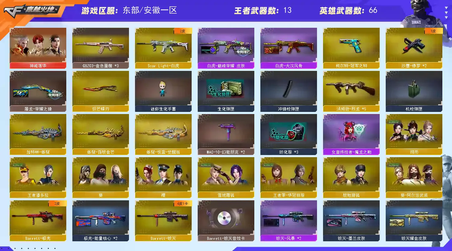 东部78v 4防神威莲华 炽芒蝶刃 6烈龙 炼狱 王者风神 白虎双皮