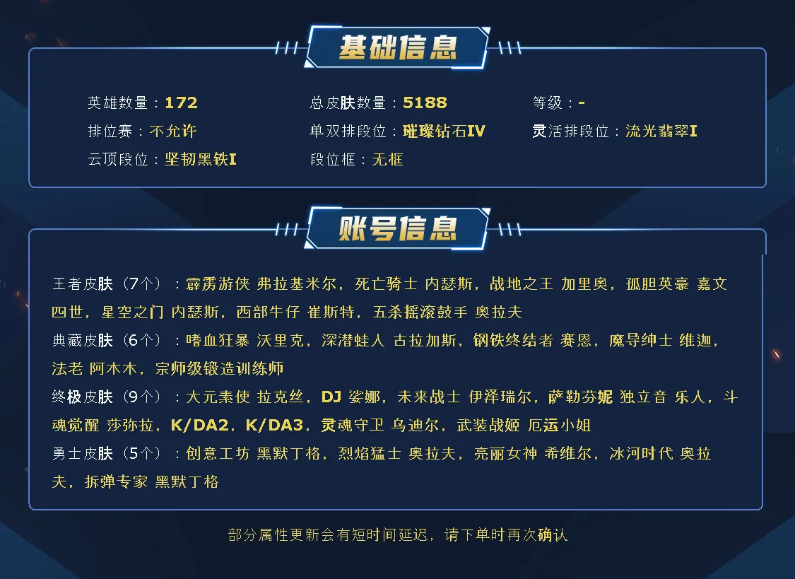 艾欧尼亚5100皮丨1803原皮丨签名阿狸双圣堂丨10幻想丨3354炫彩丨218臻彩丨396限定