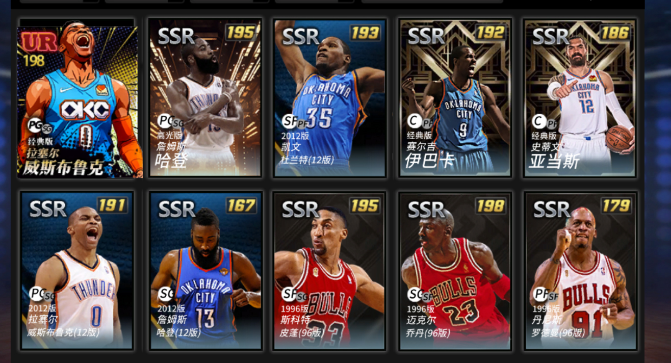 斯台普斯ur威少,伊戈达拉,12雷霆套,96公牛套