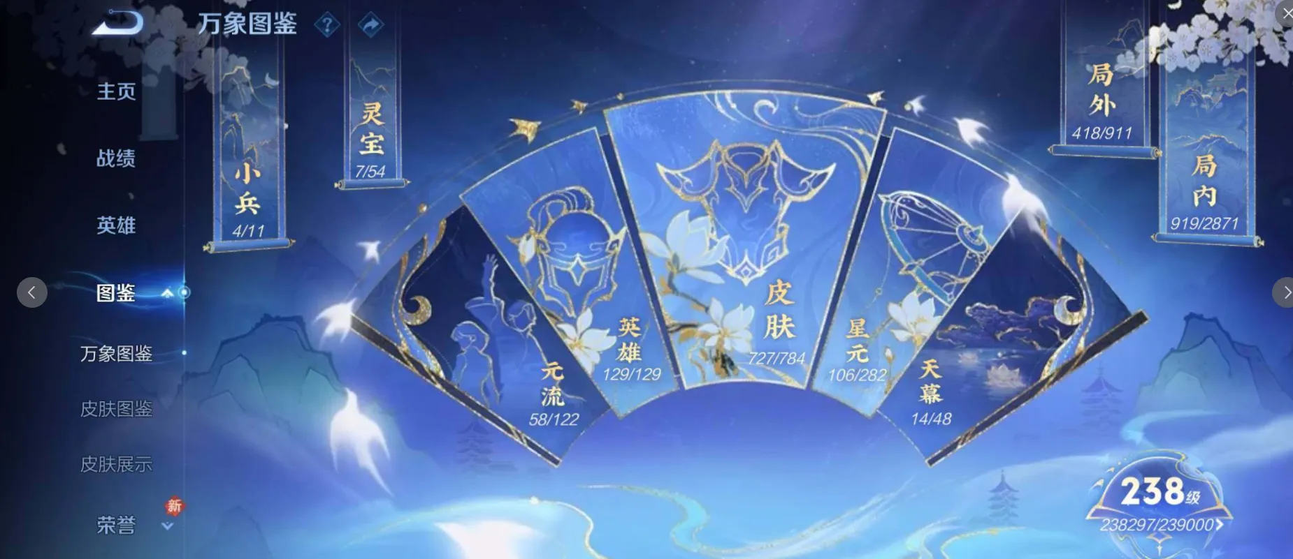 【荣耀典藏】:武则天英雄,孙悟空全息碎影,武则天倪克斯神谕,夏侯惇无限飓风号,小乔天鹅之梦,孙尚香杀手不太冷,鲁班七号星空梦想,芈月大秦宣太后,程咬金活力突击,李白鸣剑曳影,诸葛亮星域神启,花木兰九霄神辉,关羽赤影疾锋,铠银白咏叹调,貂蝉幻阙歌,韩信弑枪猎影,虞姬神鉴启示录,瑶拾光映像,伽罗最初的交响,吕布千魇归渊