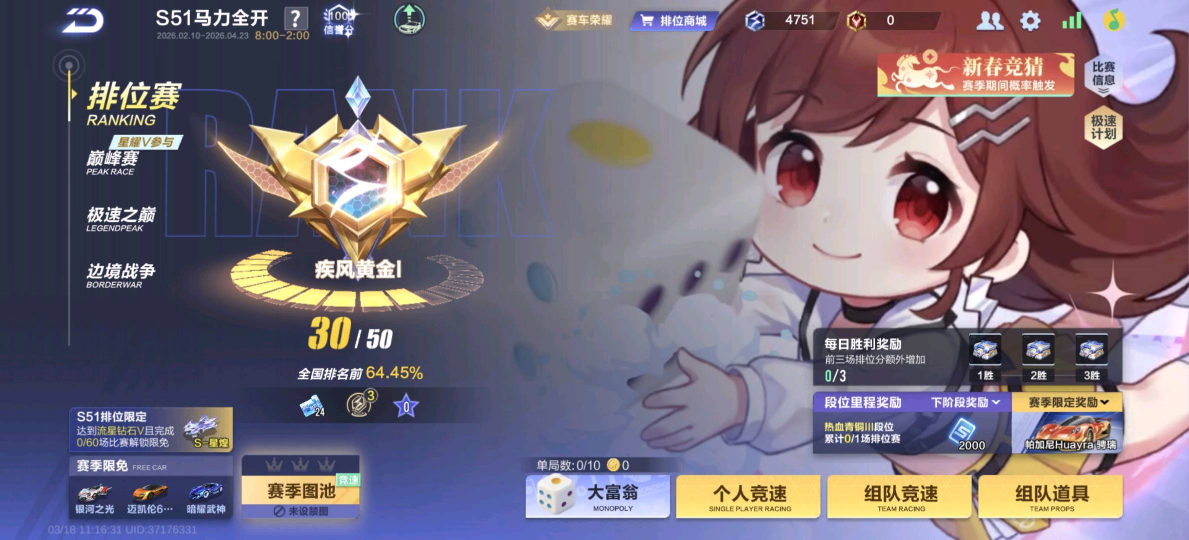 - 段位: 疾风黄金
