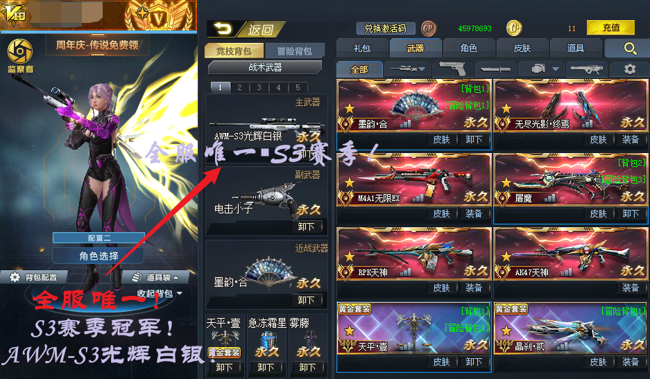 全服唯一•95式-S2光辉青铜|全服唯一•AWM-S3光辉白银|